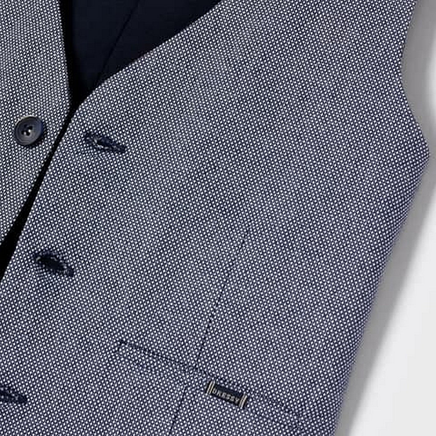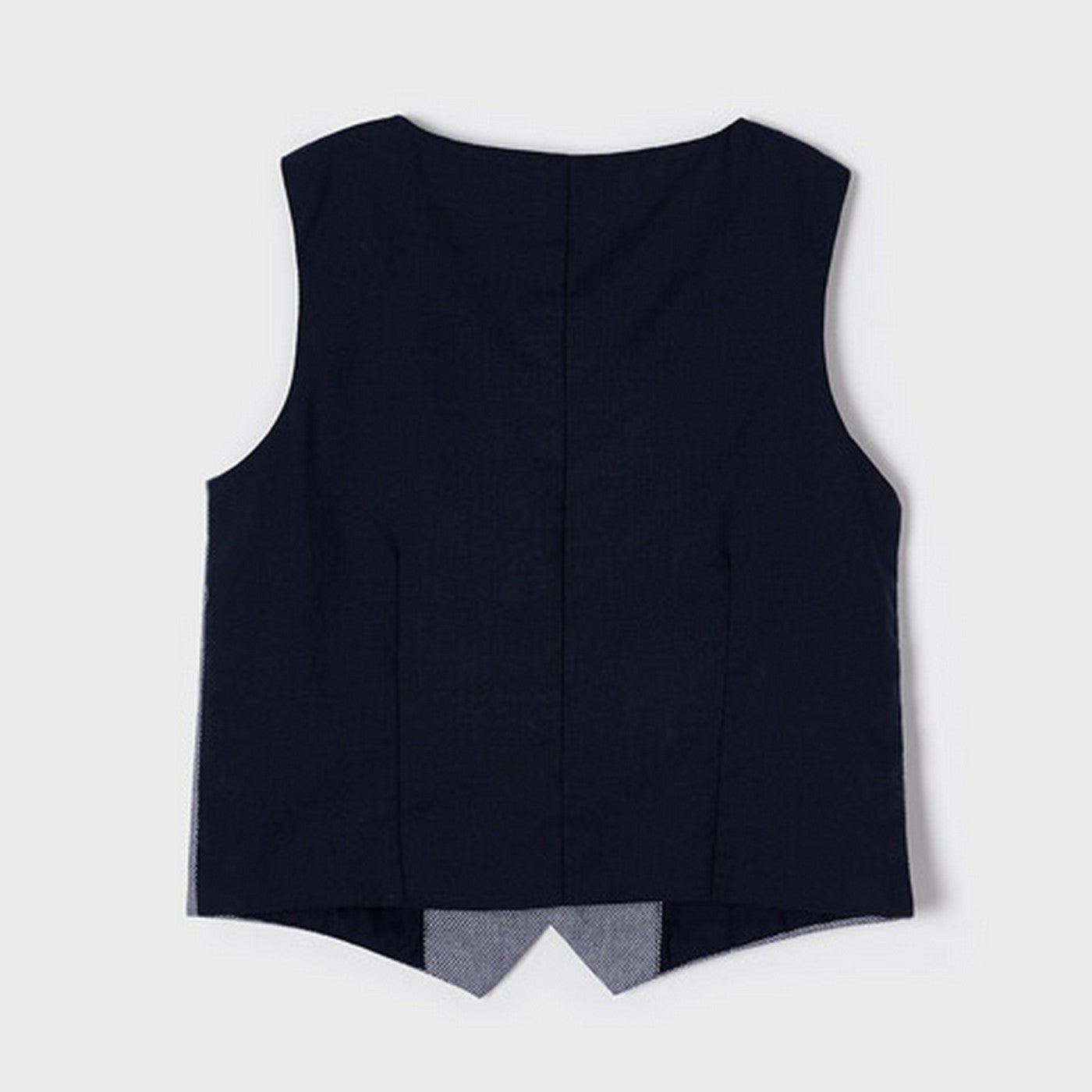 Vest in solid blue cotton blend on the back, blue and white on the front.