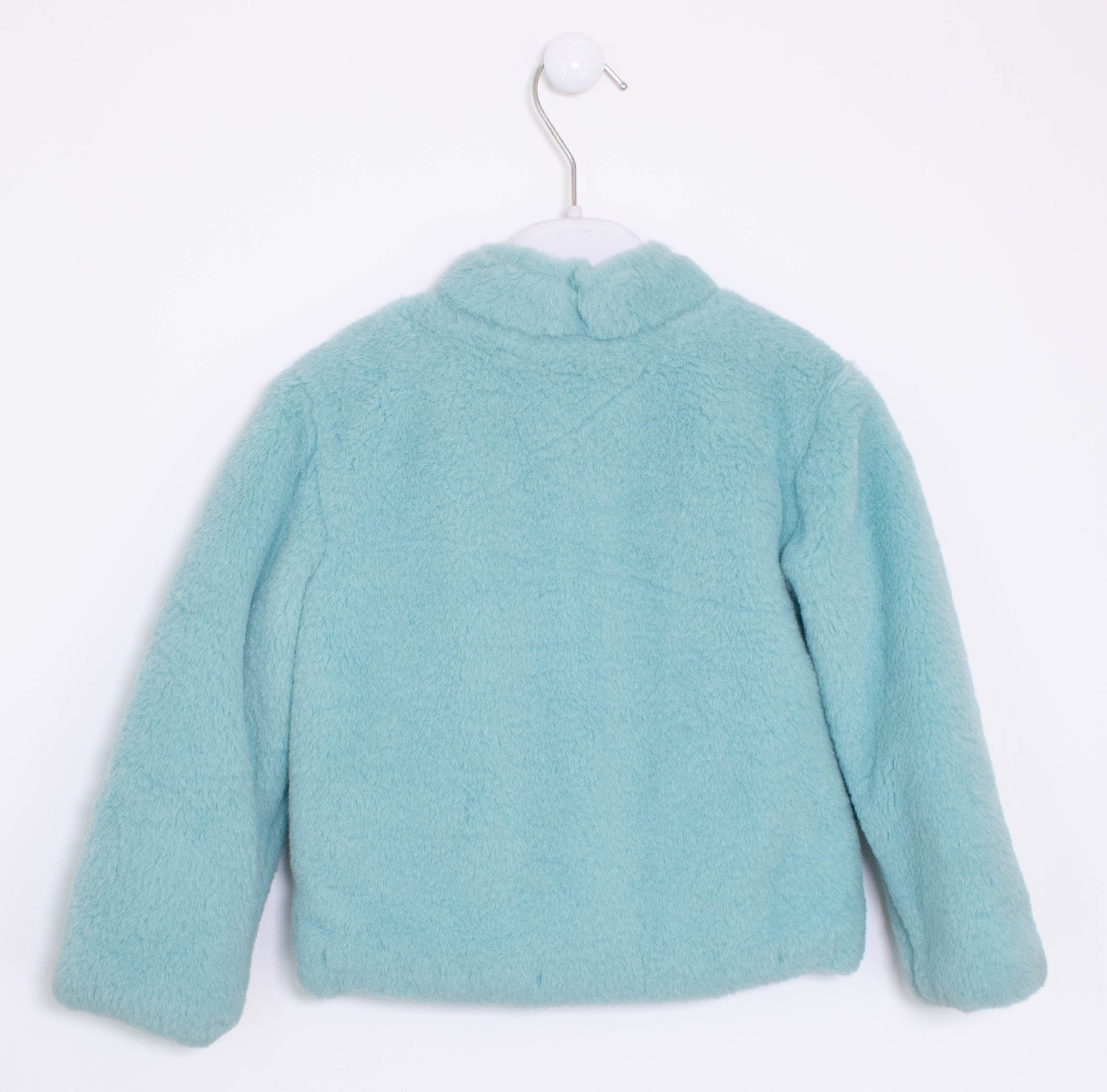 Solid color aqua green fur jacket