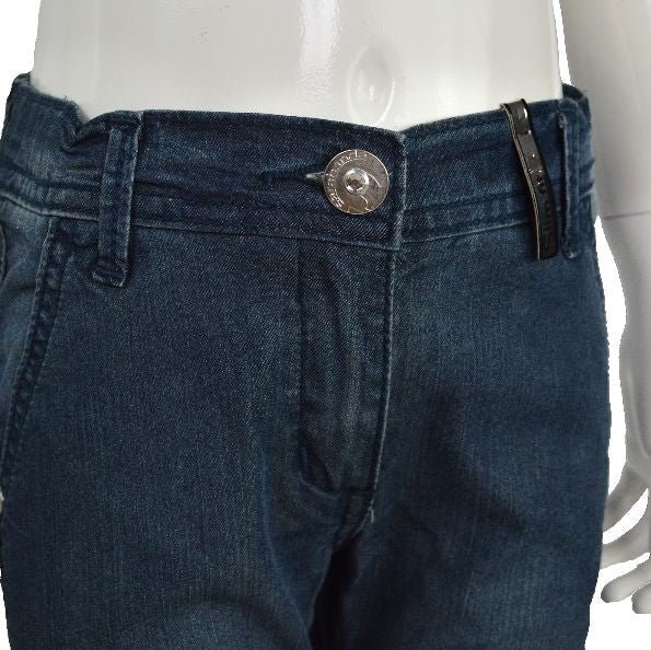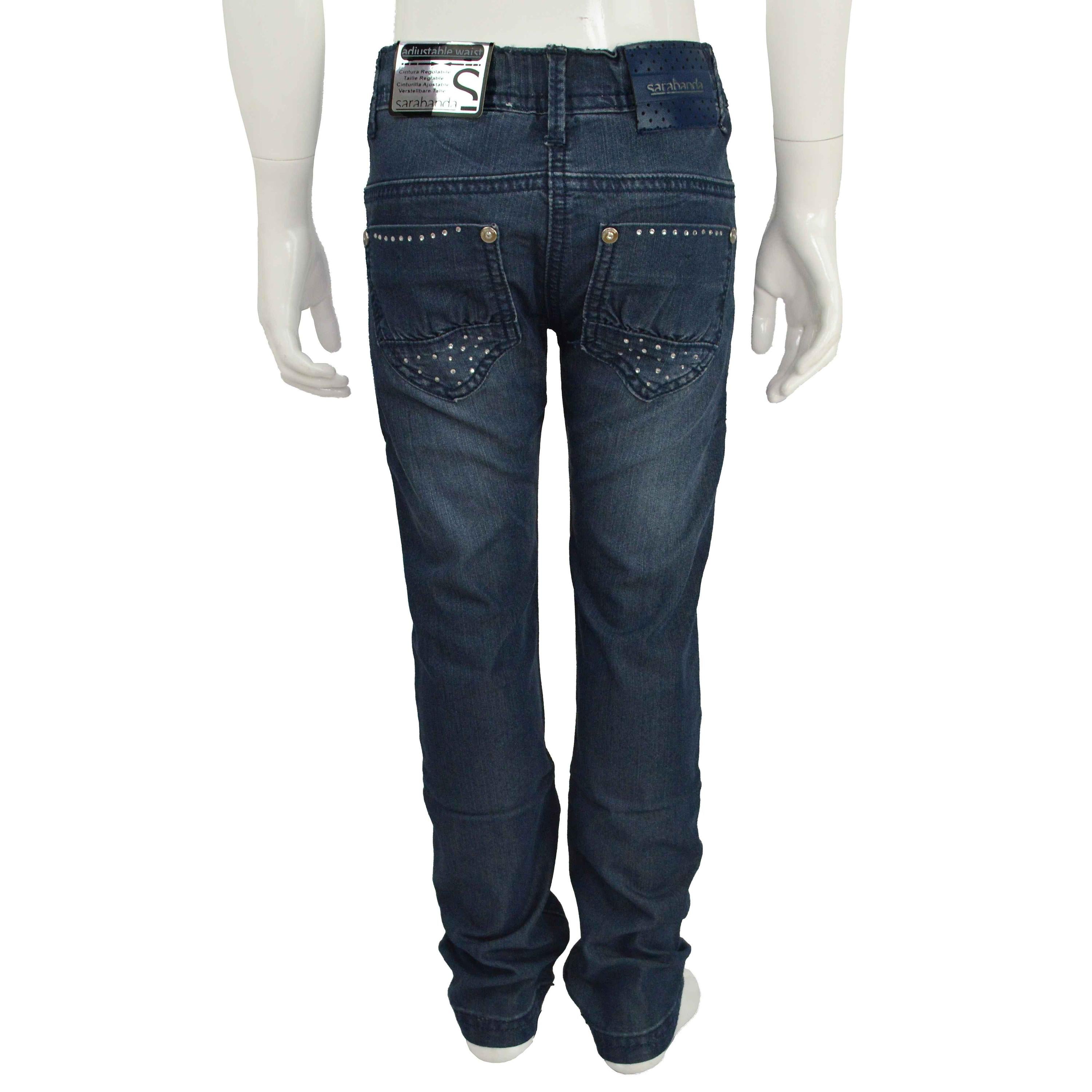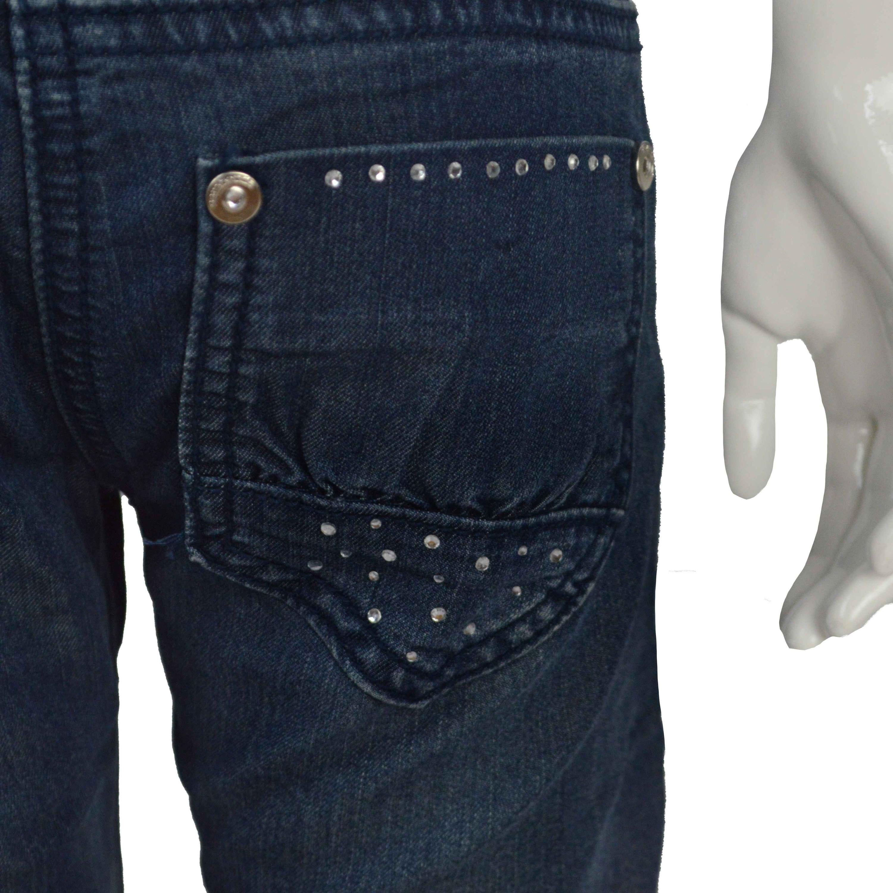 Slim fit denim jeans in warm cotton with America pockets, elastic waistband that allows you to adjust the fit and application of rhinestones on the back pockets.