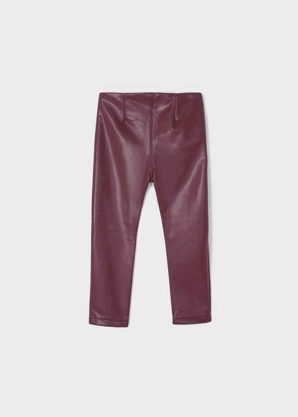 Trousers for girl leggings model. Elastic waist for a better fit. Leatherette outer part.