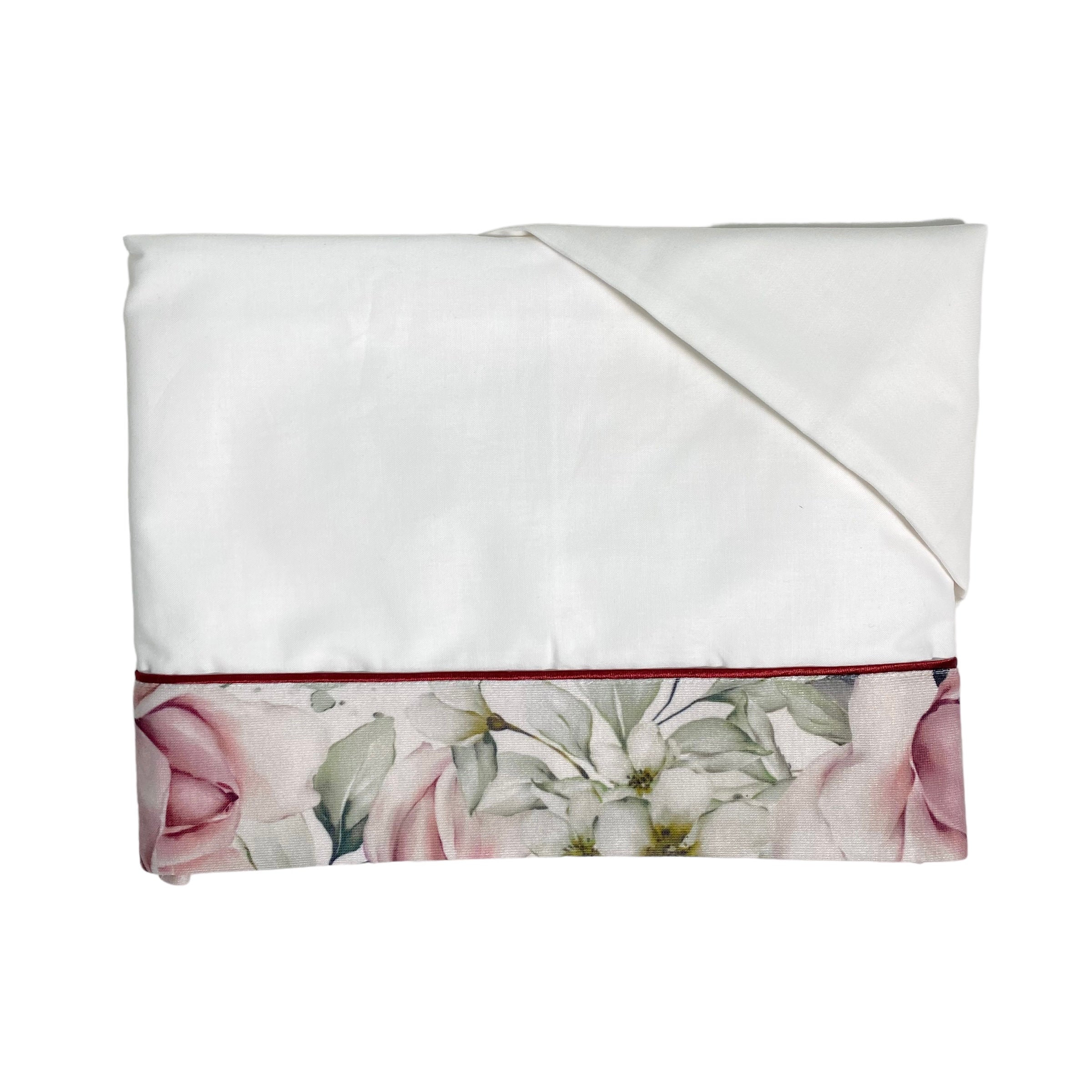 Lenzuolino per carrozzina in cotone con fascia floreale.