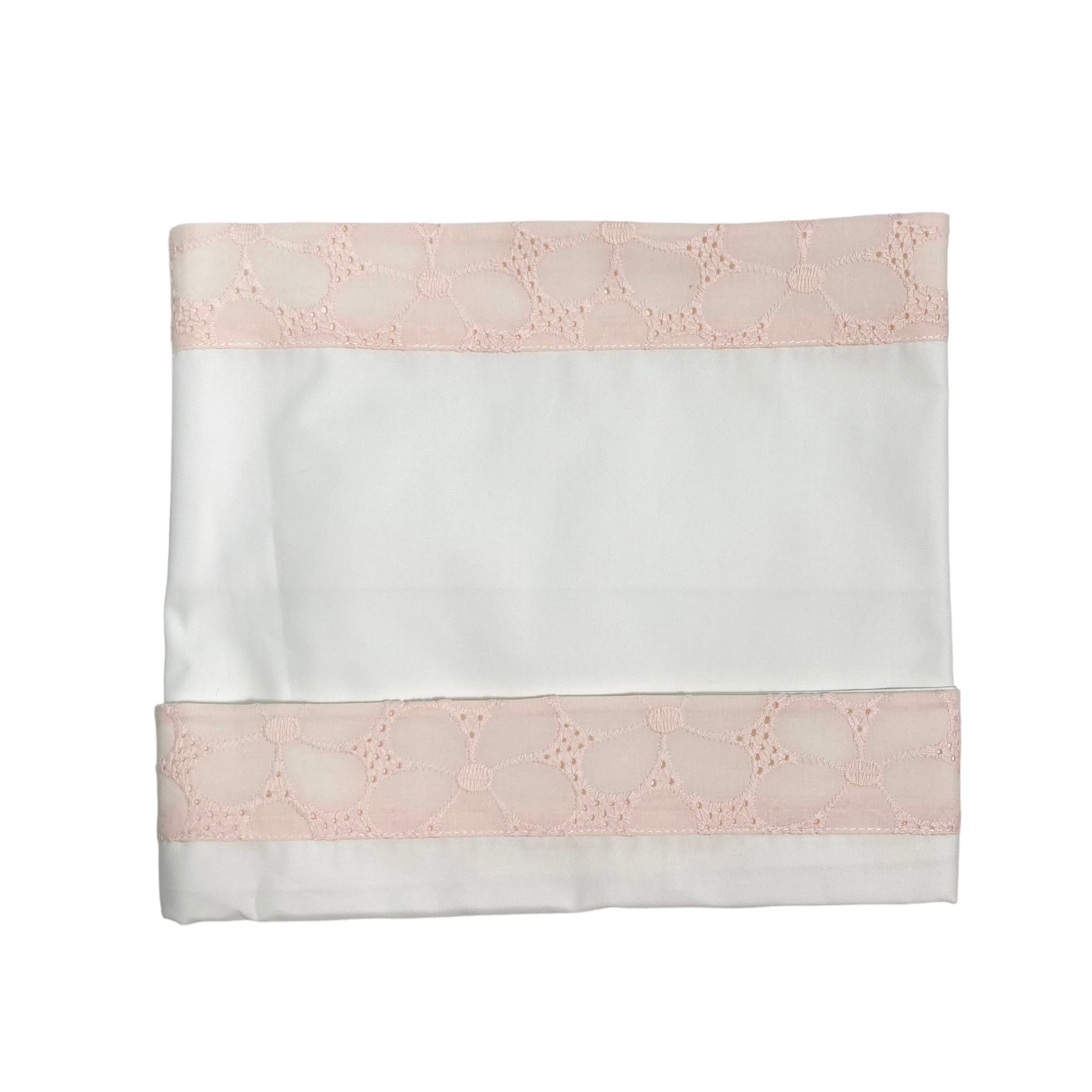 Lenzuolino per carrozzina in cotone, in tinta unita panna, con bordo in pizzo san gallo.