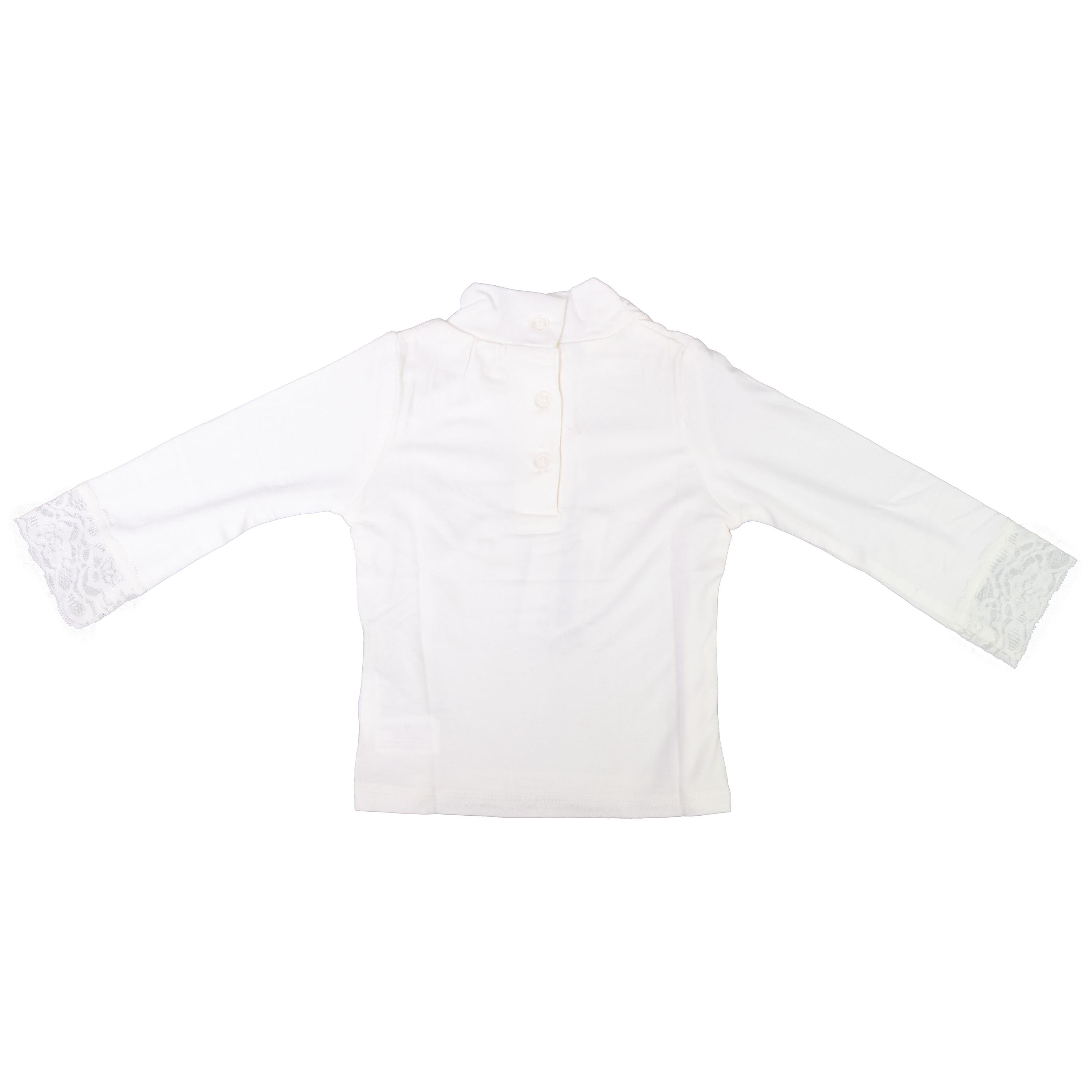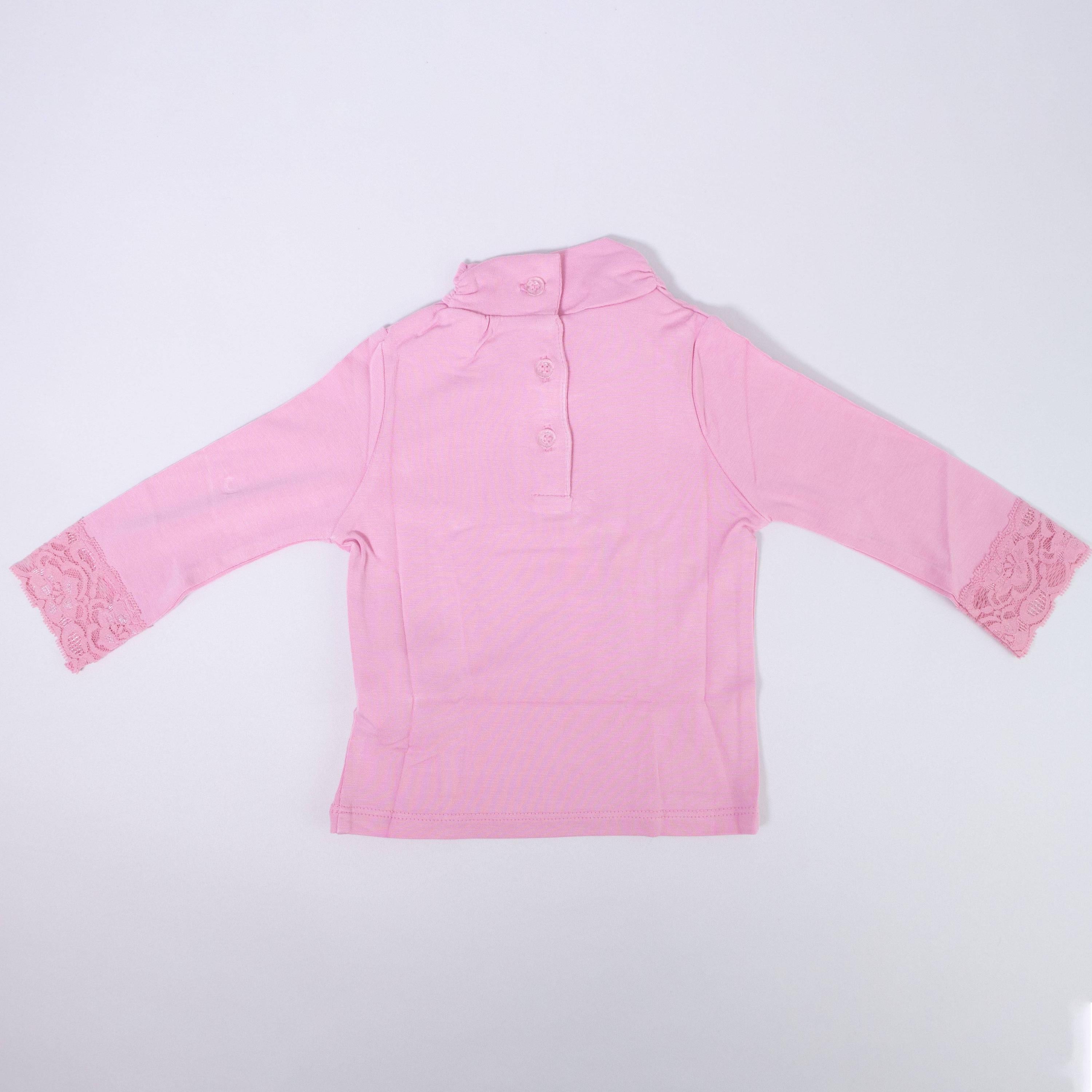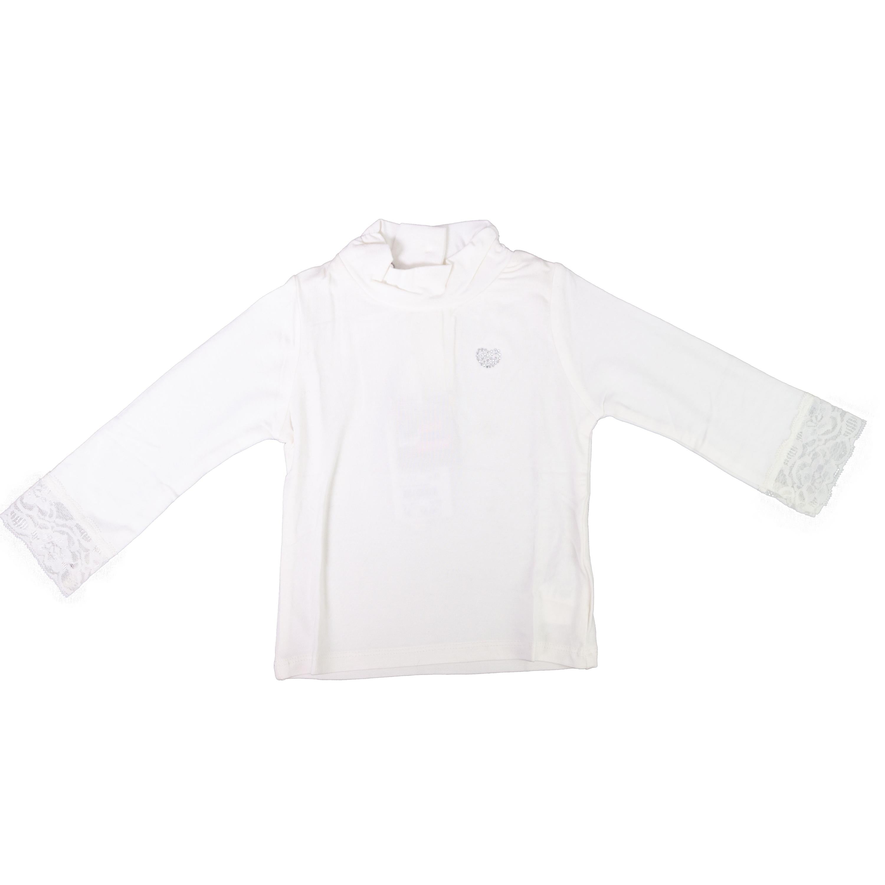 Long Sleeve Cotton Turtleneck With Rhinestone Heart And Lace On The Cuffs.