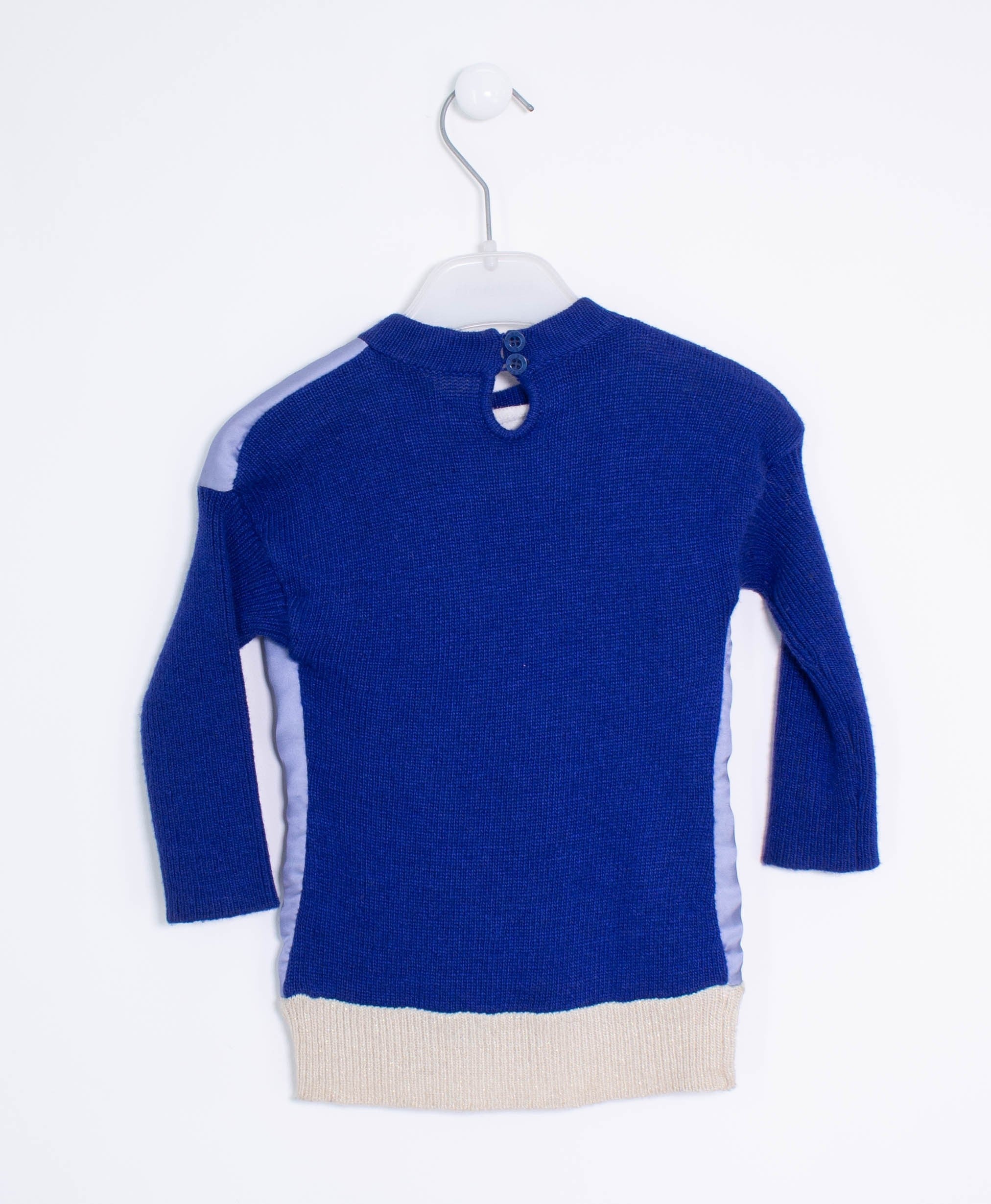 blue striped effect sleeves, collar and back