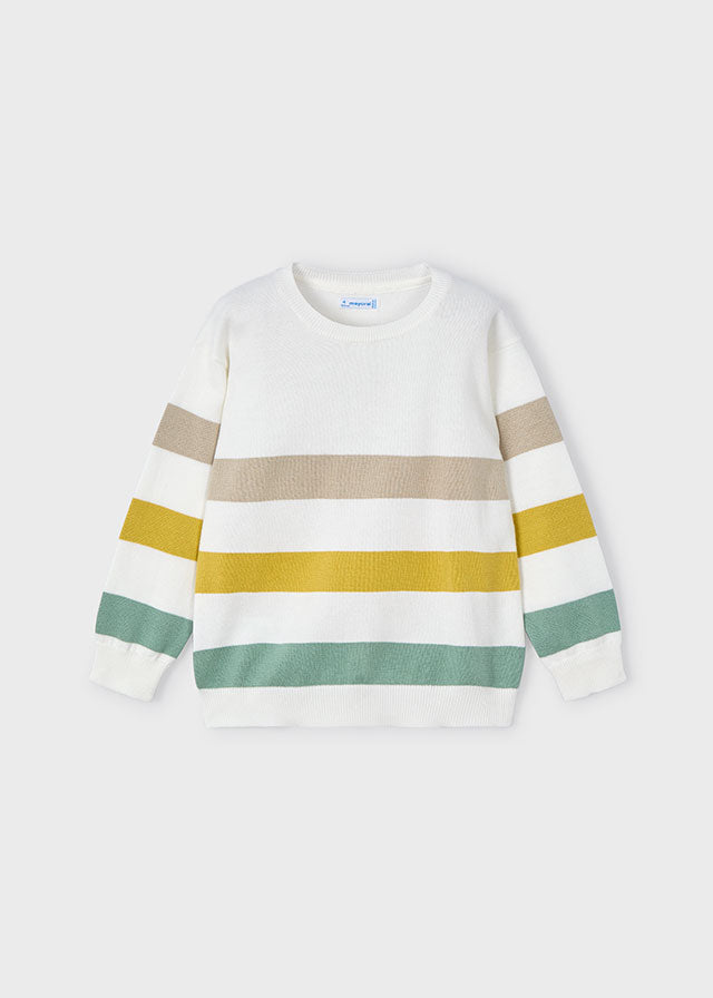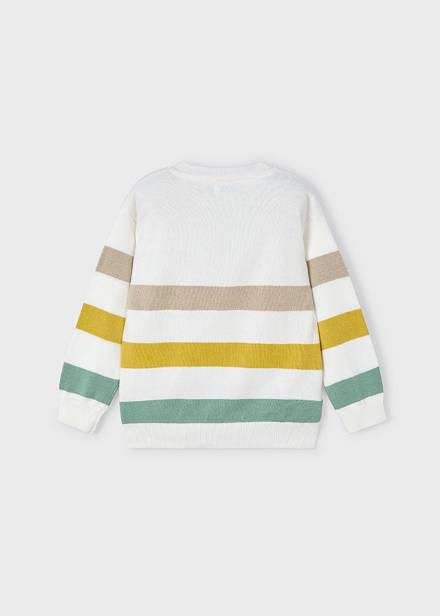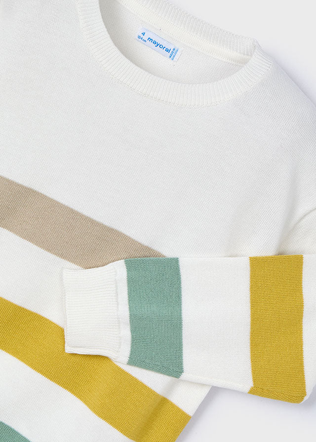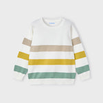 Maglione manica lunga per bambino. Girocollo. Vestibilità dalle linee morbide con spalle scivolate. Tessuto 100% cotone. orlo, polsini e colletto con elastico per una migliore vestibilità. Trama a righe. Scegliendo i nostri prodotti in cotone, supporti il nostro impegno nell'iniziativa Better Cotton.