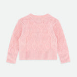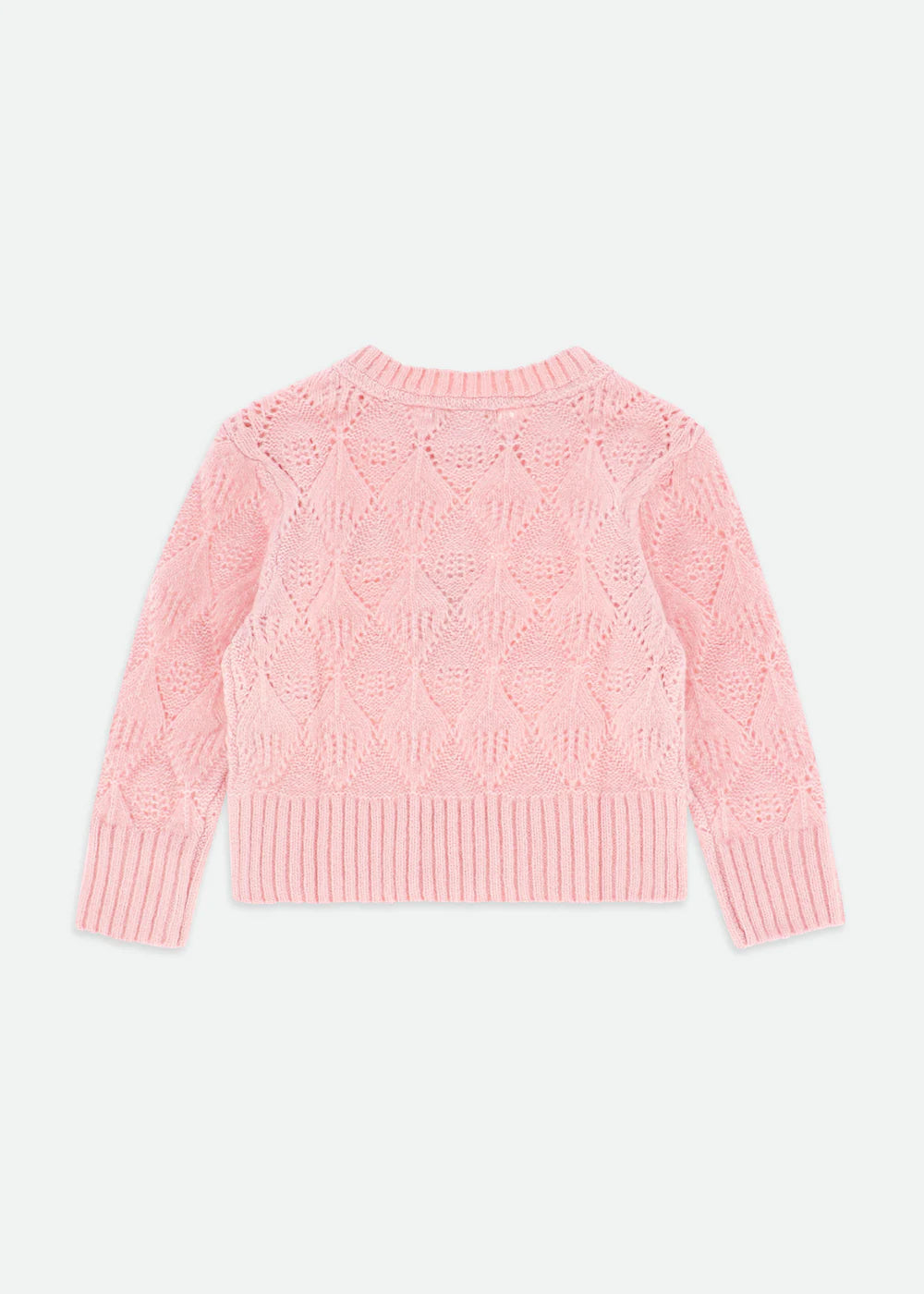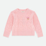 Adorabile maglione in maglia pointelle a rombi per ragazze. Il maglione è realizzato con la maglia grossa più morbida in blu. Dettagliato con un orlo a costine profondo con il nostro fiocco caratteristico e un ciondolo a cuore dorato sul petto.
