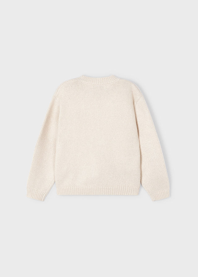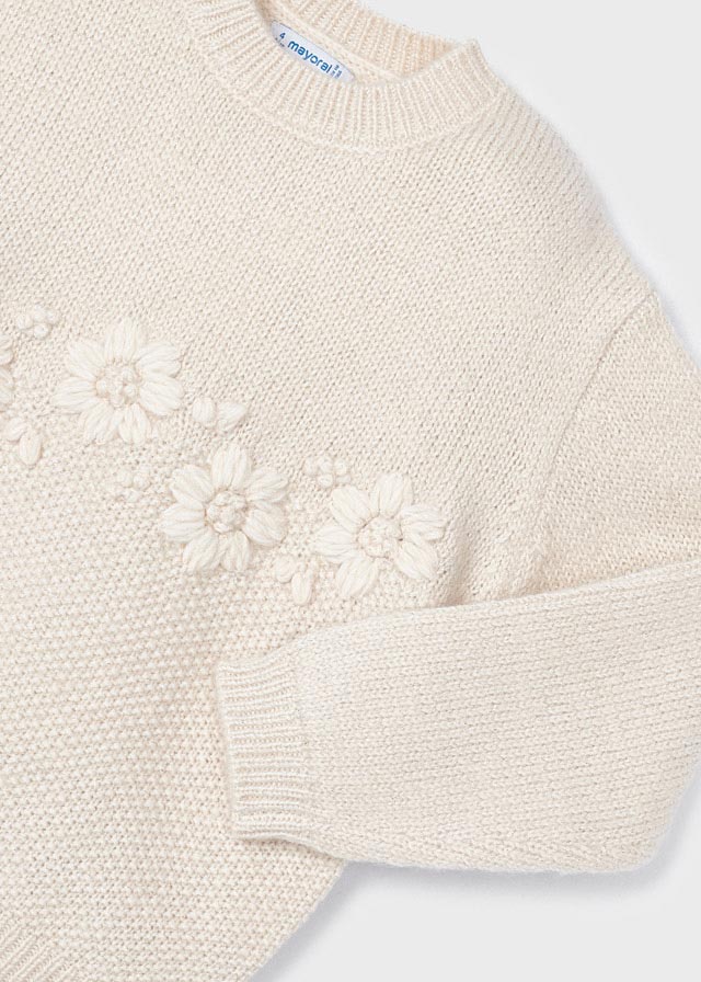Pullover mit Rosenstickerei auf der Vorderseite und Lurexgarn.