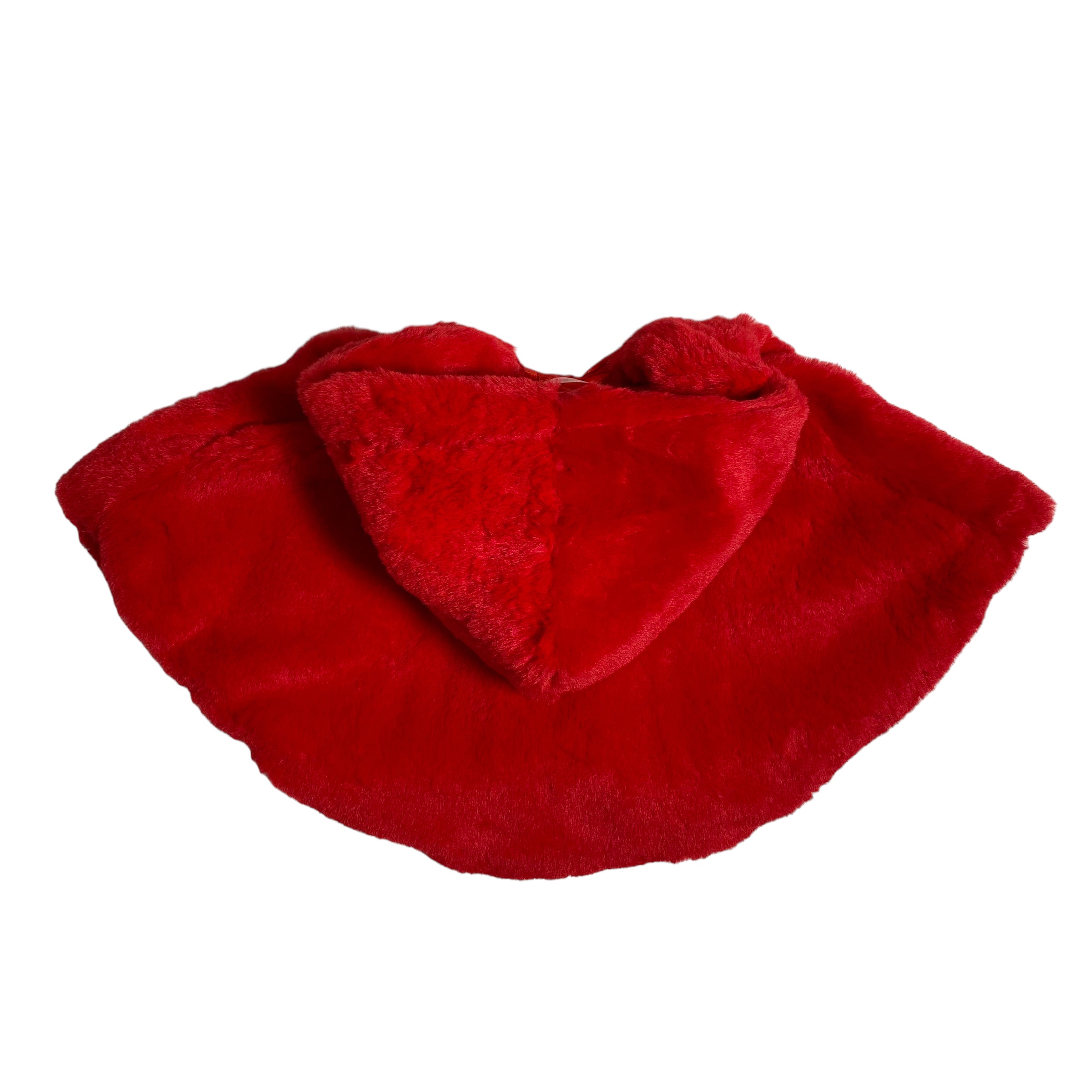 Eleganter Umhang mit Kunstpelzkapuze und Satinschleifenverschluss.