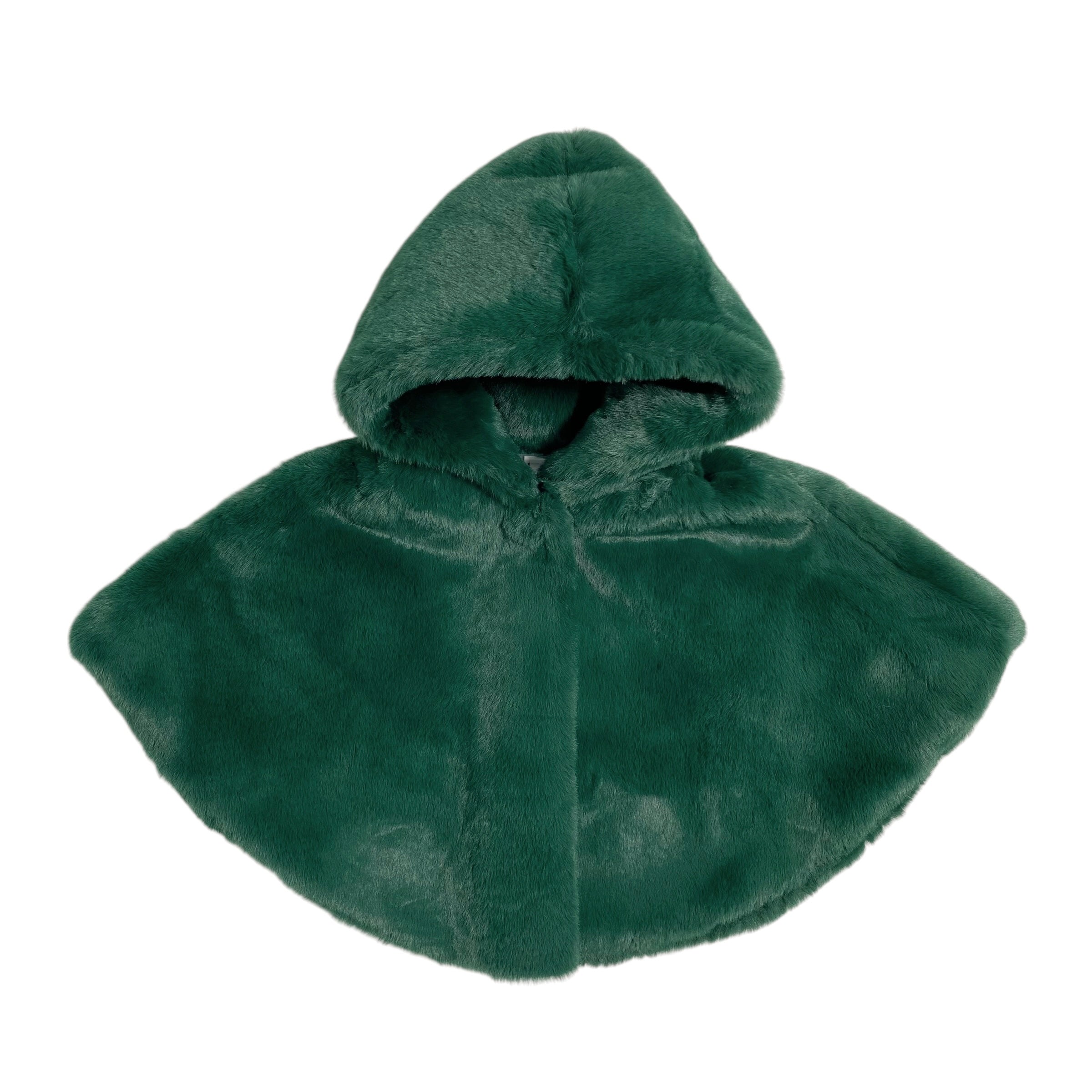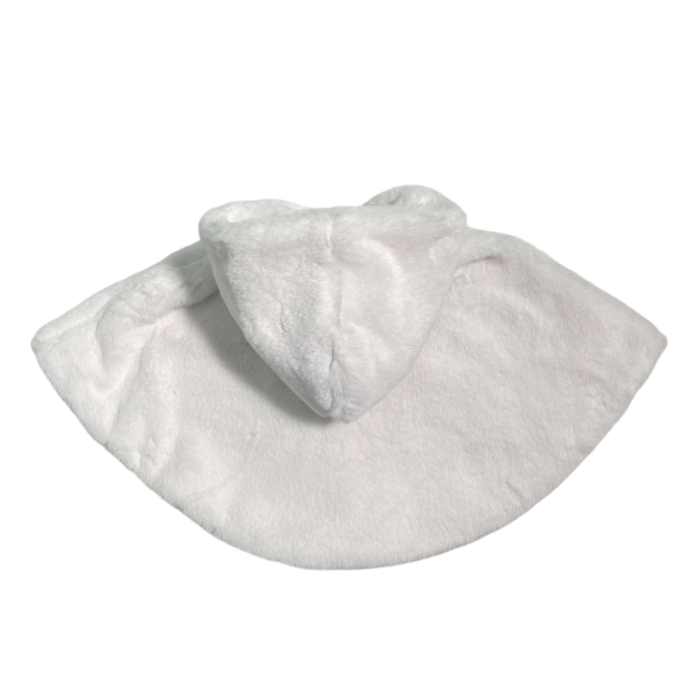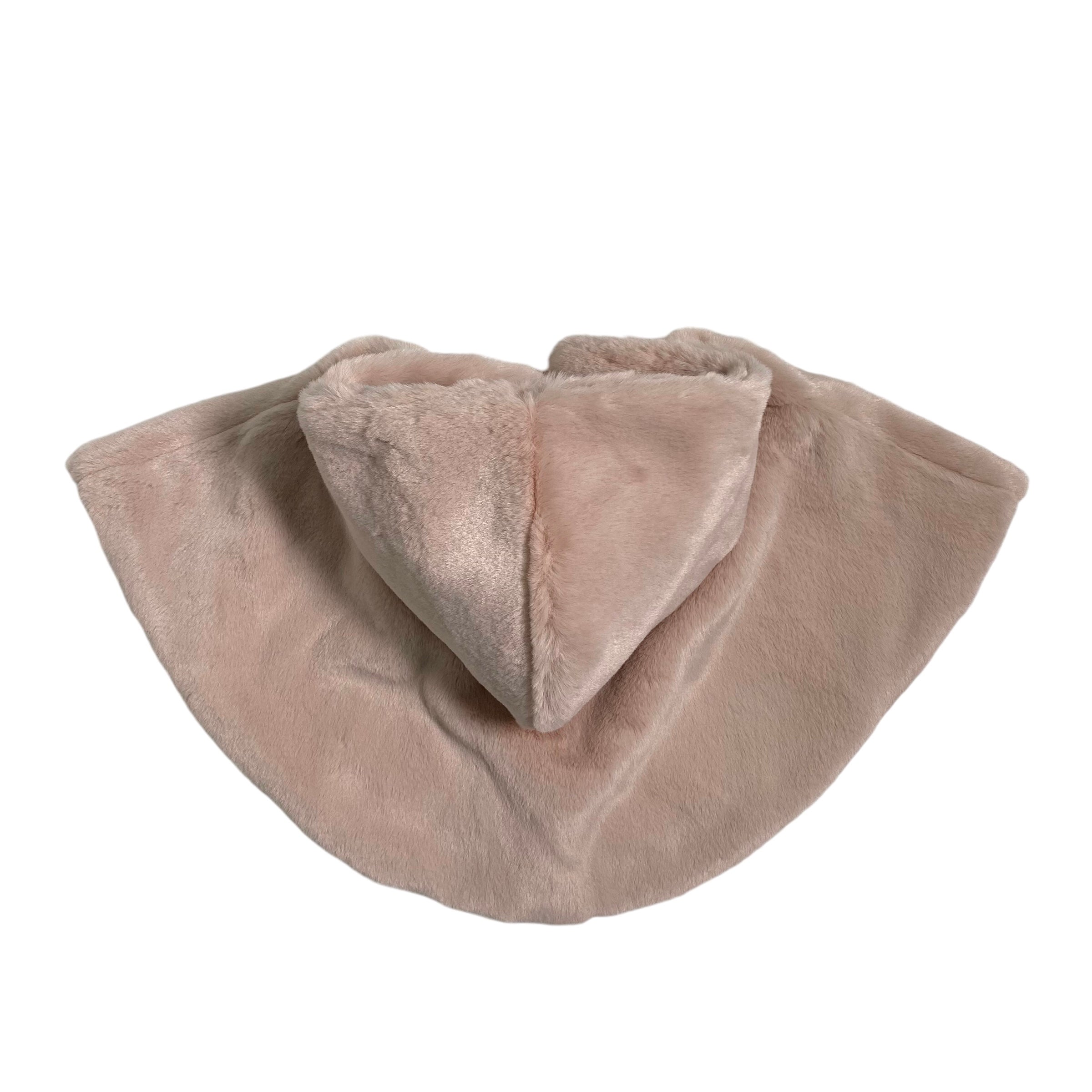 Eleganter Umhang mit Kunstpelzkapuze und Satinschleifenverschluss.