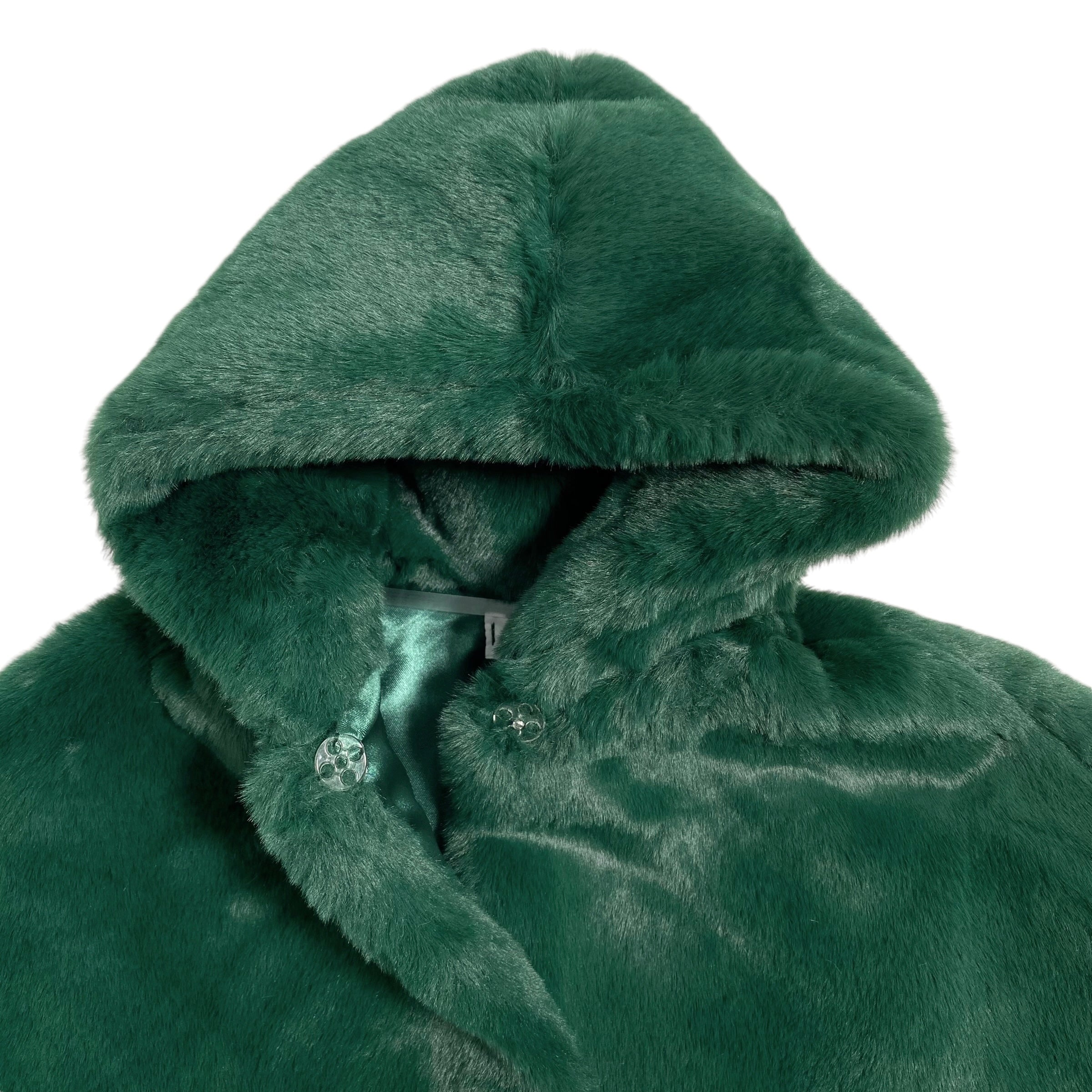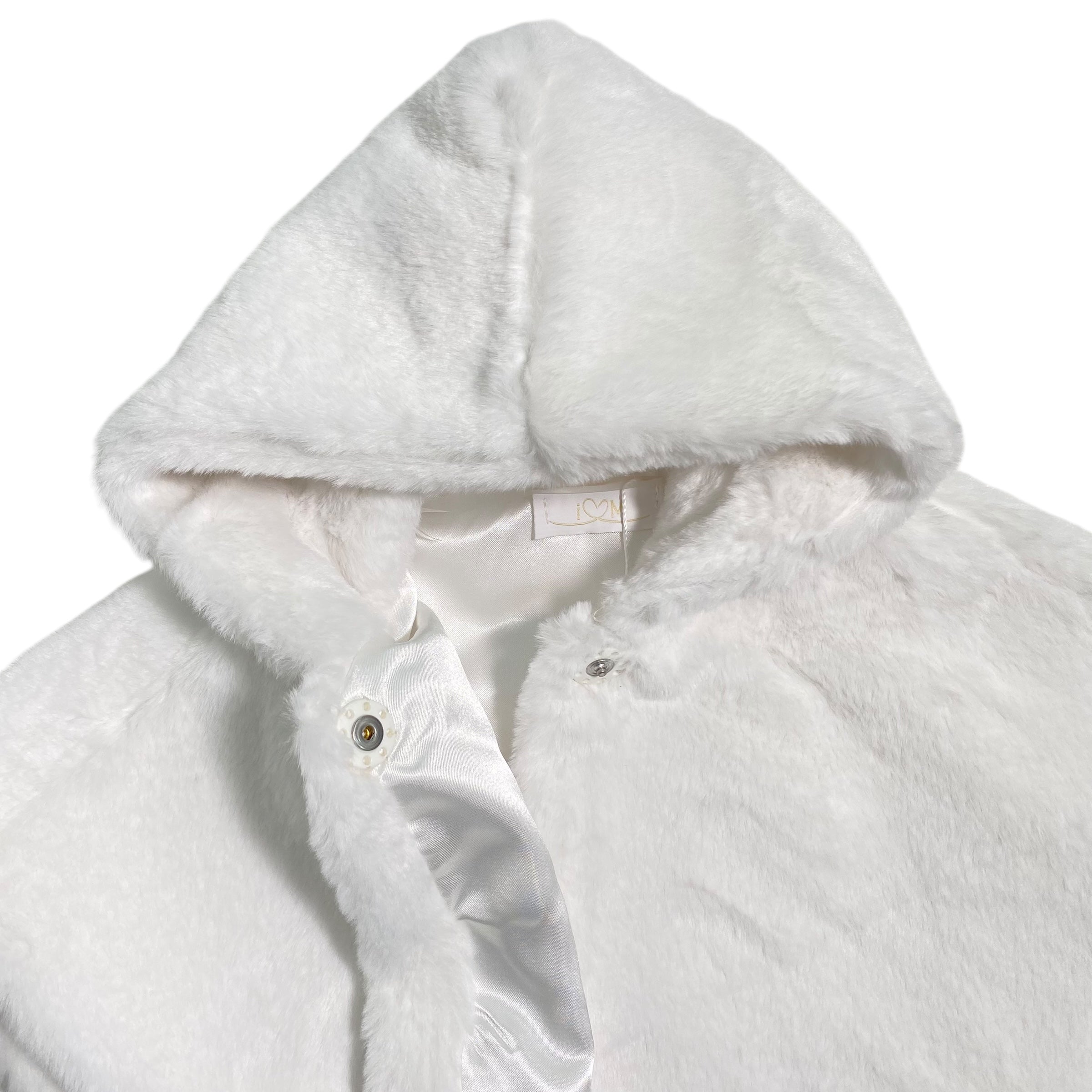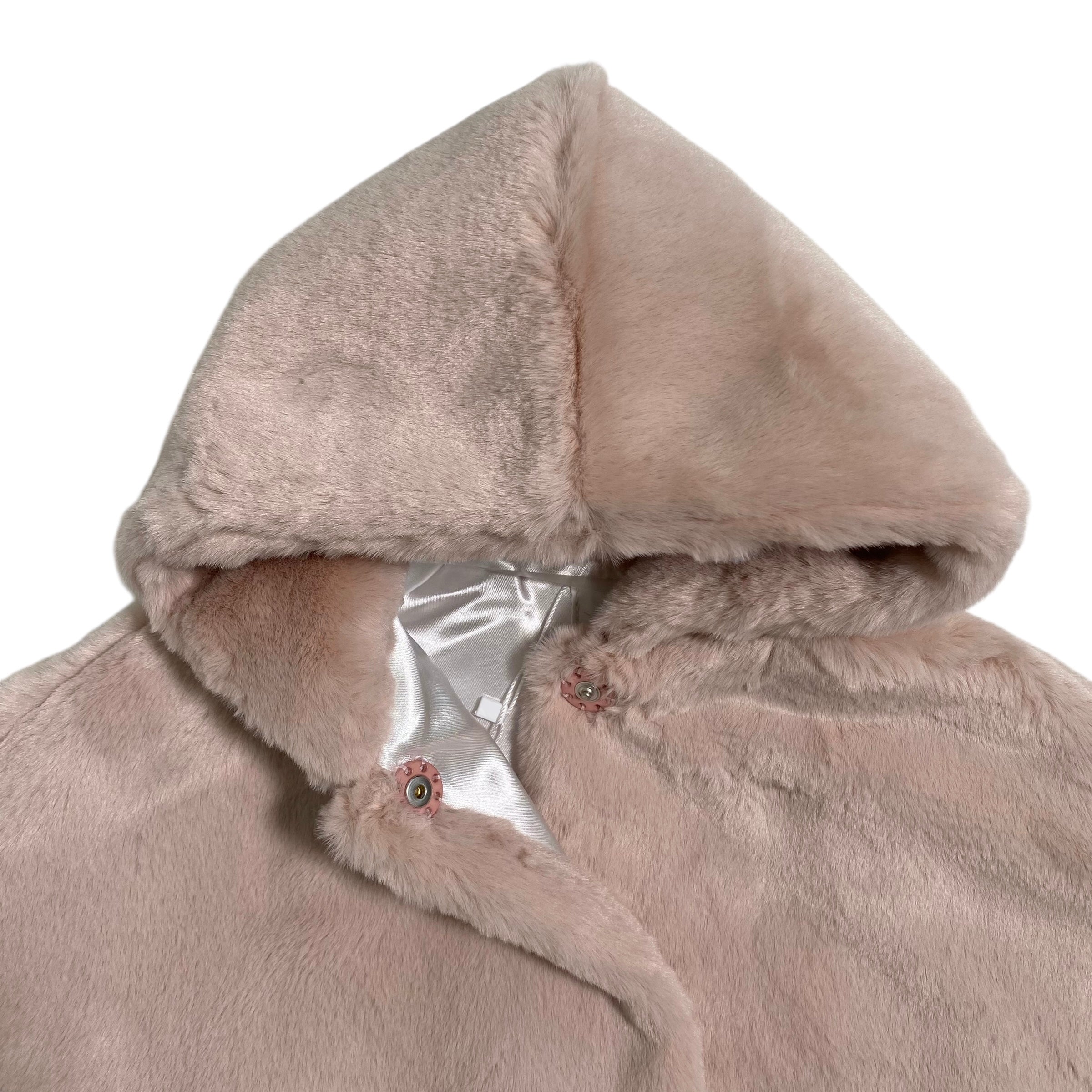 Eleganter Umhang mit Kunstpelzkapuze und Satinschleifenverschluss.