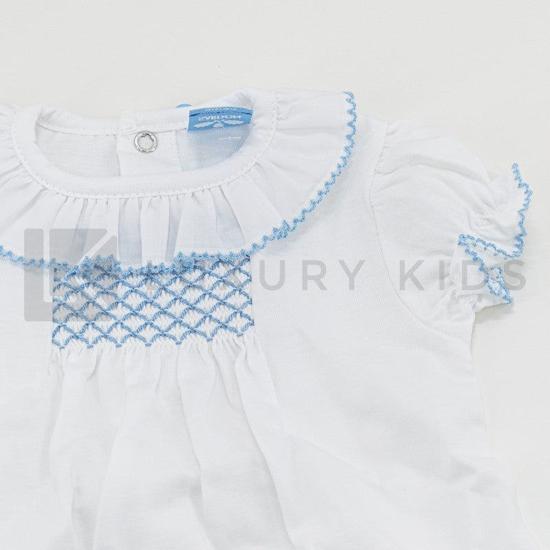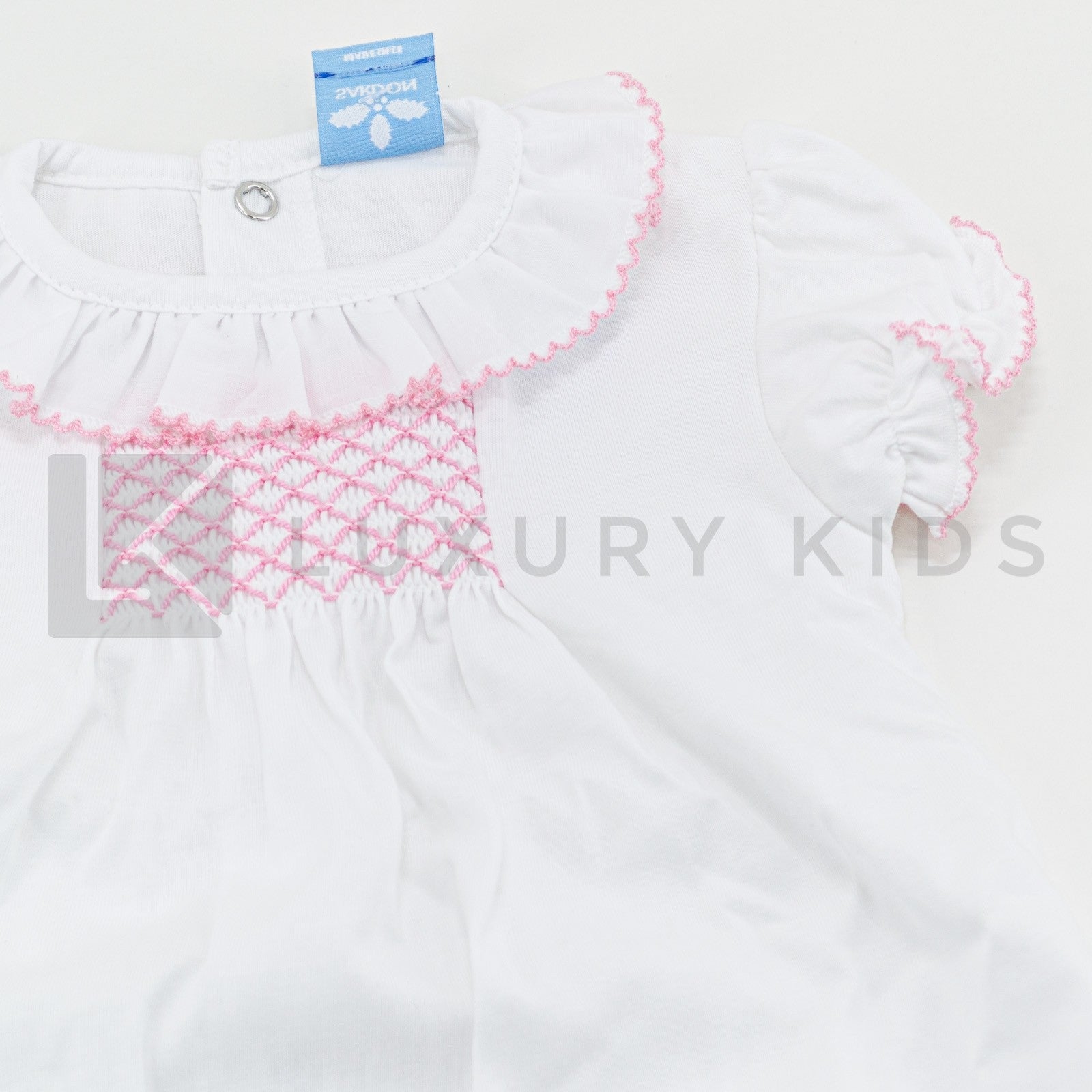 Pagliaccetto Intero In Cotone Bianco Con Punto Smock Neonato-a Sardon LA416 - SARDON - LuxuryKids