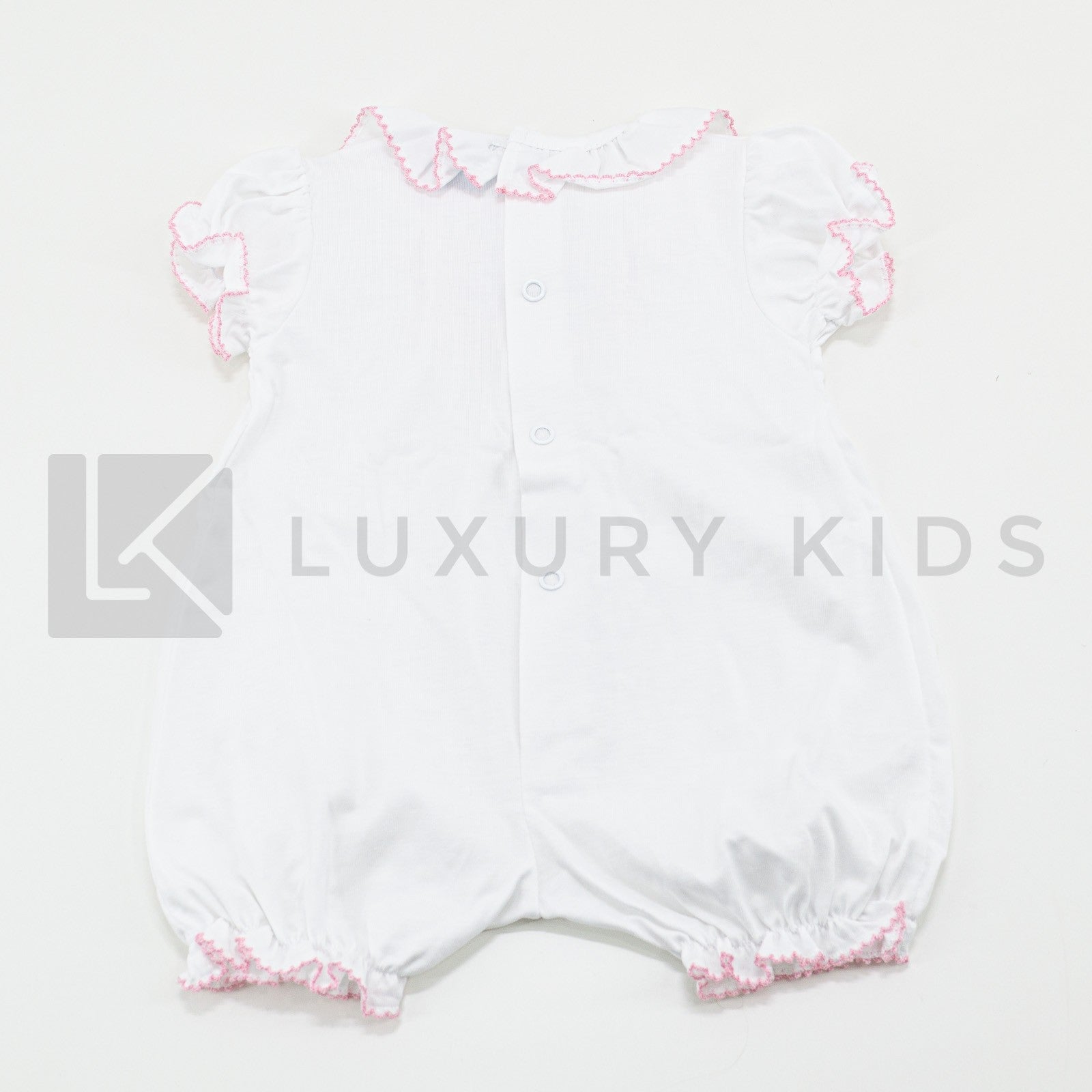 Whole Romper In White Cotton With Smock Stitch Newborn-a Sardon LA416