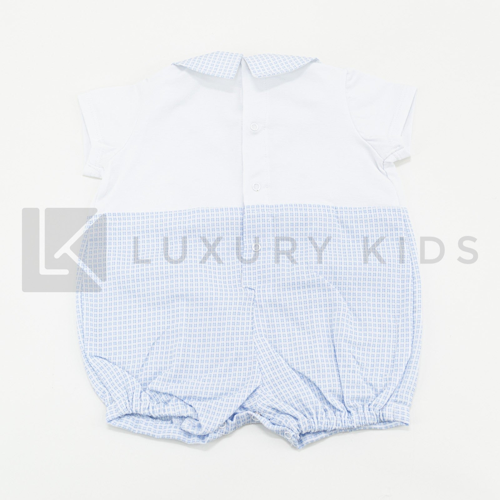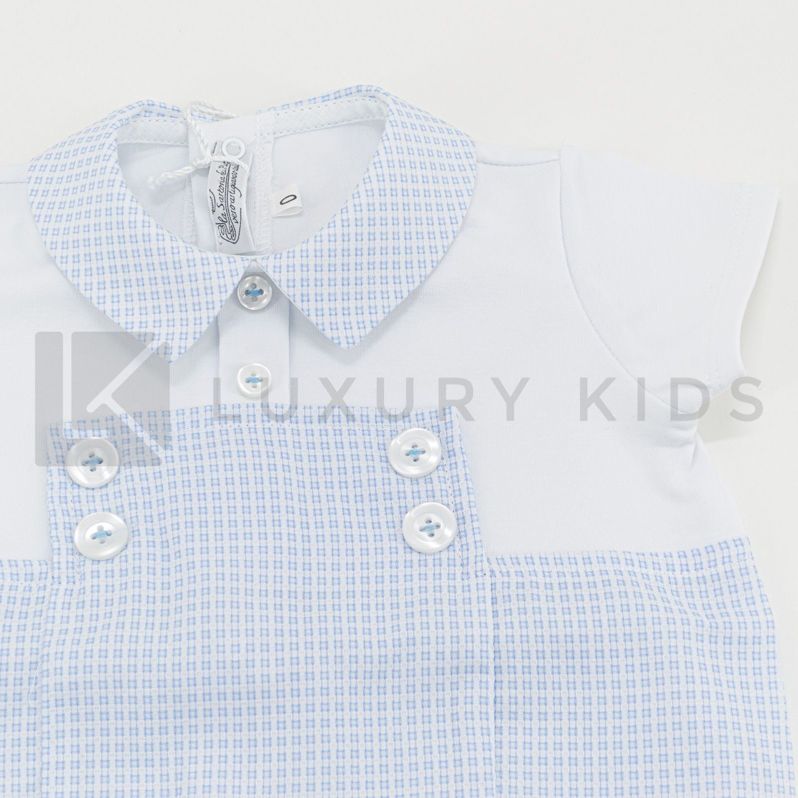 Baby Whole Romper In White And Light Blue Cotton LA SARTORIA DEI PICCOLI LPB751
