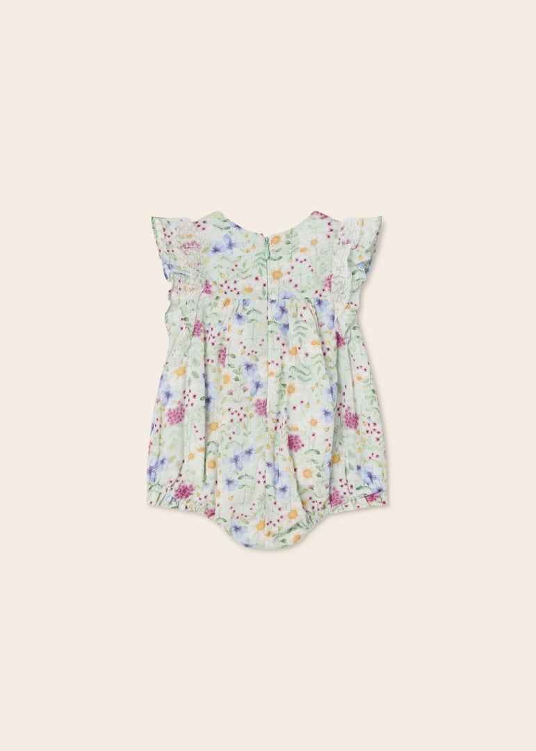 Ärmelloser Strampler für Neugeborene. Druckknopfverschluss an der Innenseite der Oberschenkel erleichtert die Passform. Hintere Öffnung mit unsichtbarem Reißverschluss. Stoff aus 100 % Baumwolle. Dekorative Elemente: geraffte Details mit Wabenmuster, dekorative Rüschen. Modell aus unserer elegantesten Linie und exklusiv entworfen, um die Kleinen zu besonderen Anlässen einzukleiden.