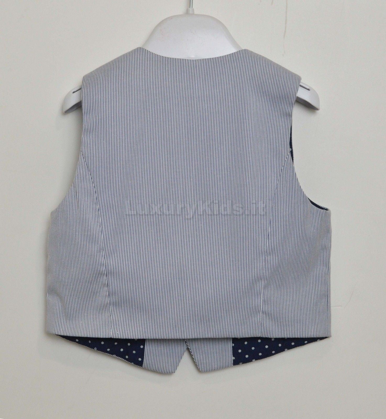 -Grey cotton waistcoat with blue stripes and three-button closure on the front