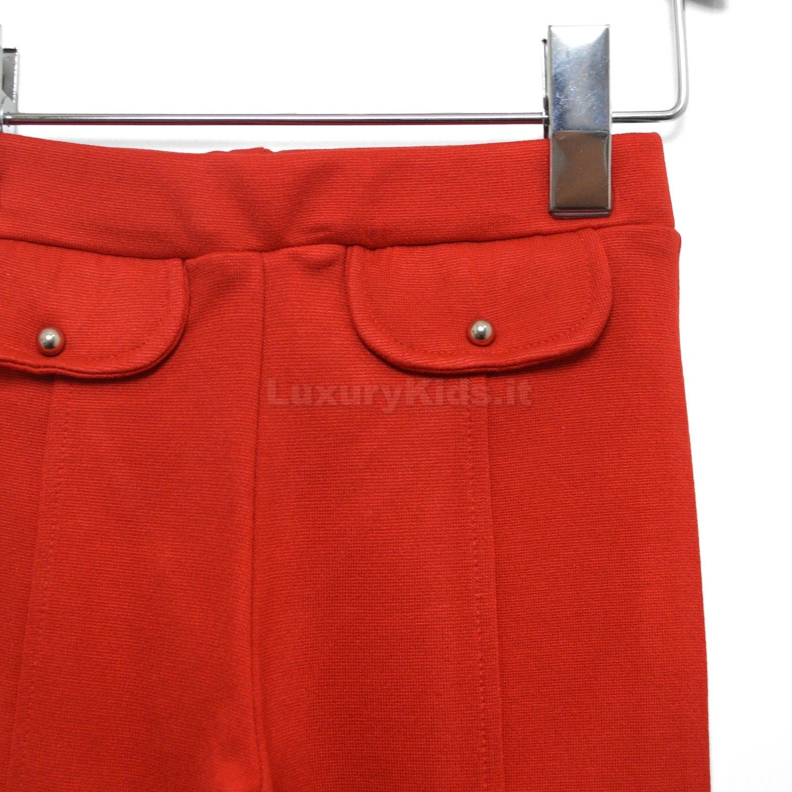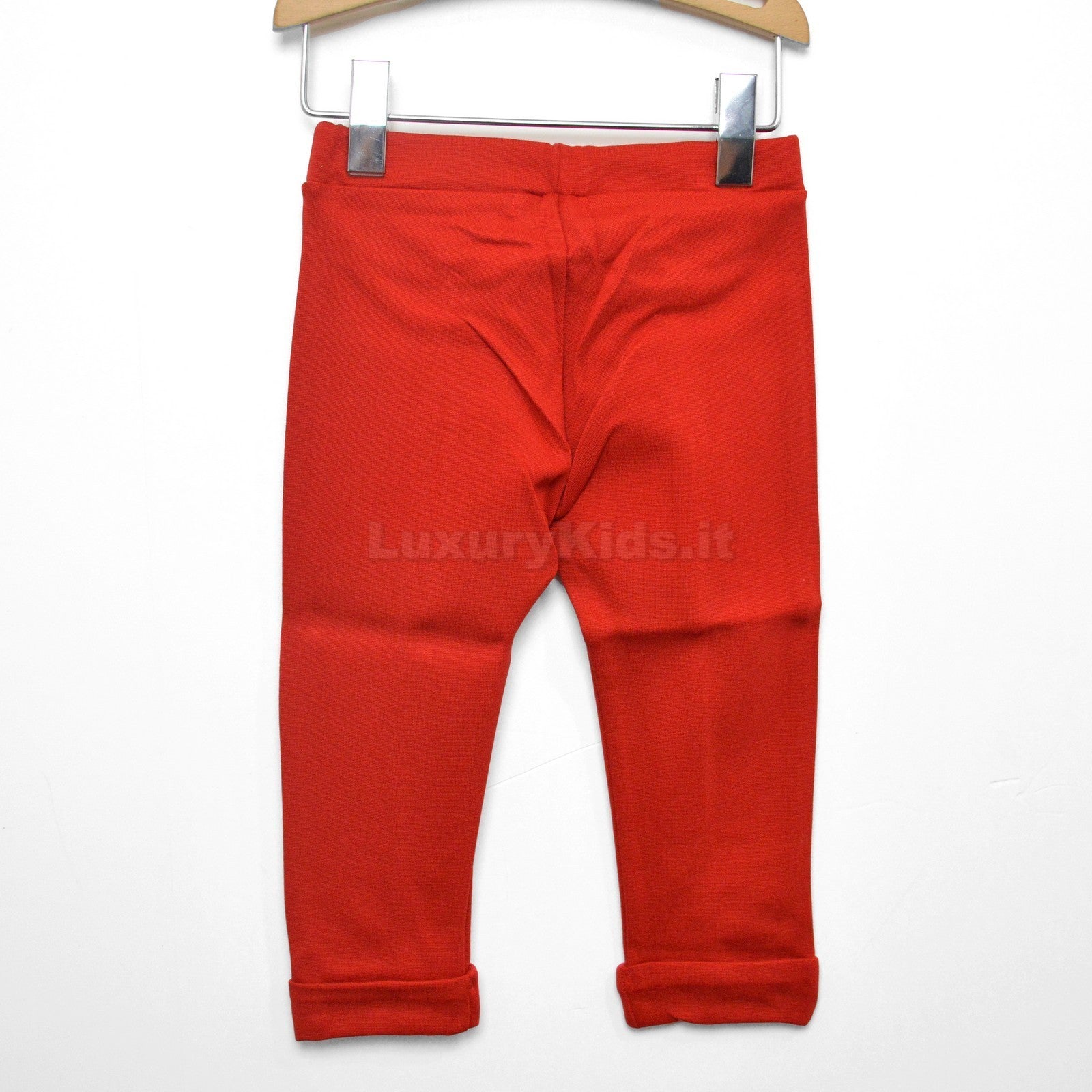 -Pantaleggins in warm red cotton in solid color with elastic waistband and fake pockets on the front