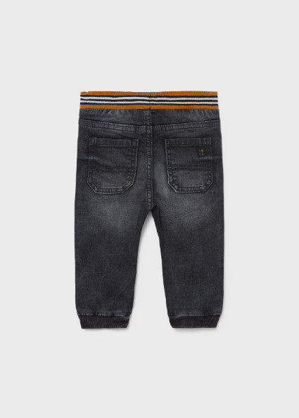 Jogger pants for newborns, wide at the top and narrower at the ankle. Ideal for a sporty look that reflects the street trend. Elasticated waist with adjustable drawstring. Hem with elastic for a better fit.