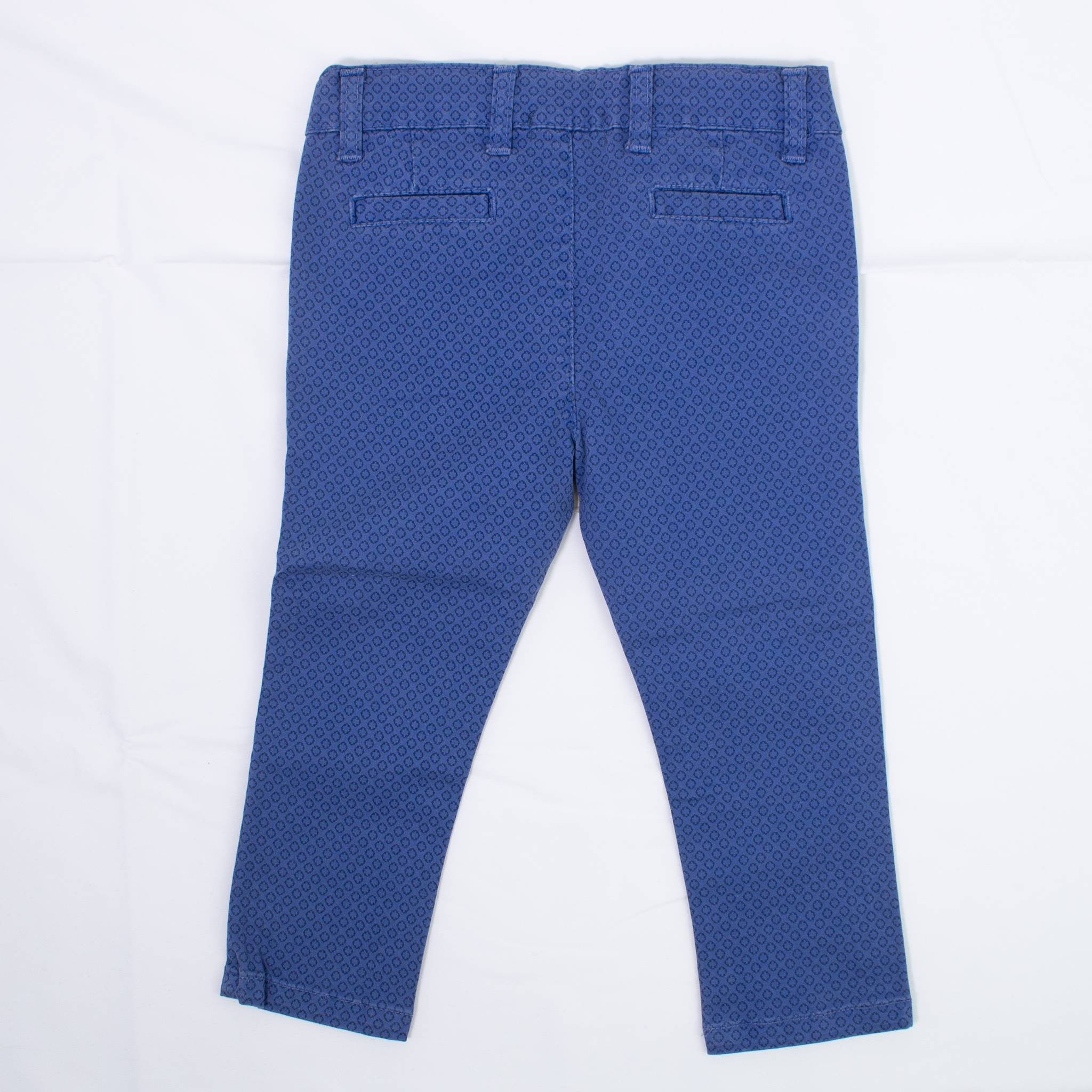 Warm blue cotton trousers with fantasy print with america pockets