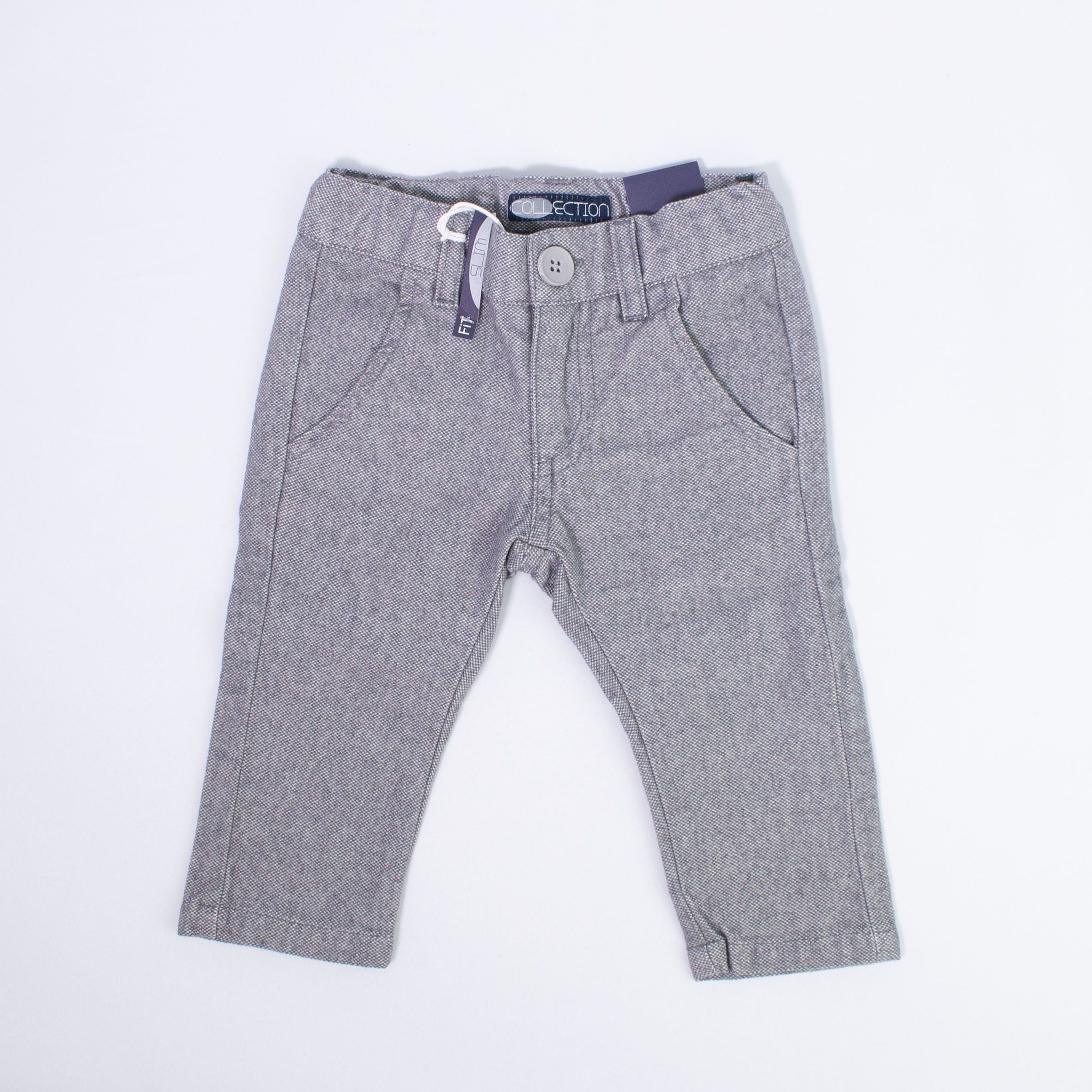Long Gray Trousers In Warm Cotton With Micro-pattern. Internal Adjustable Elastic Waist. Slim model