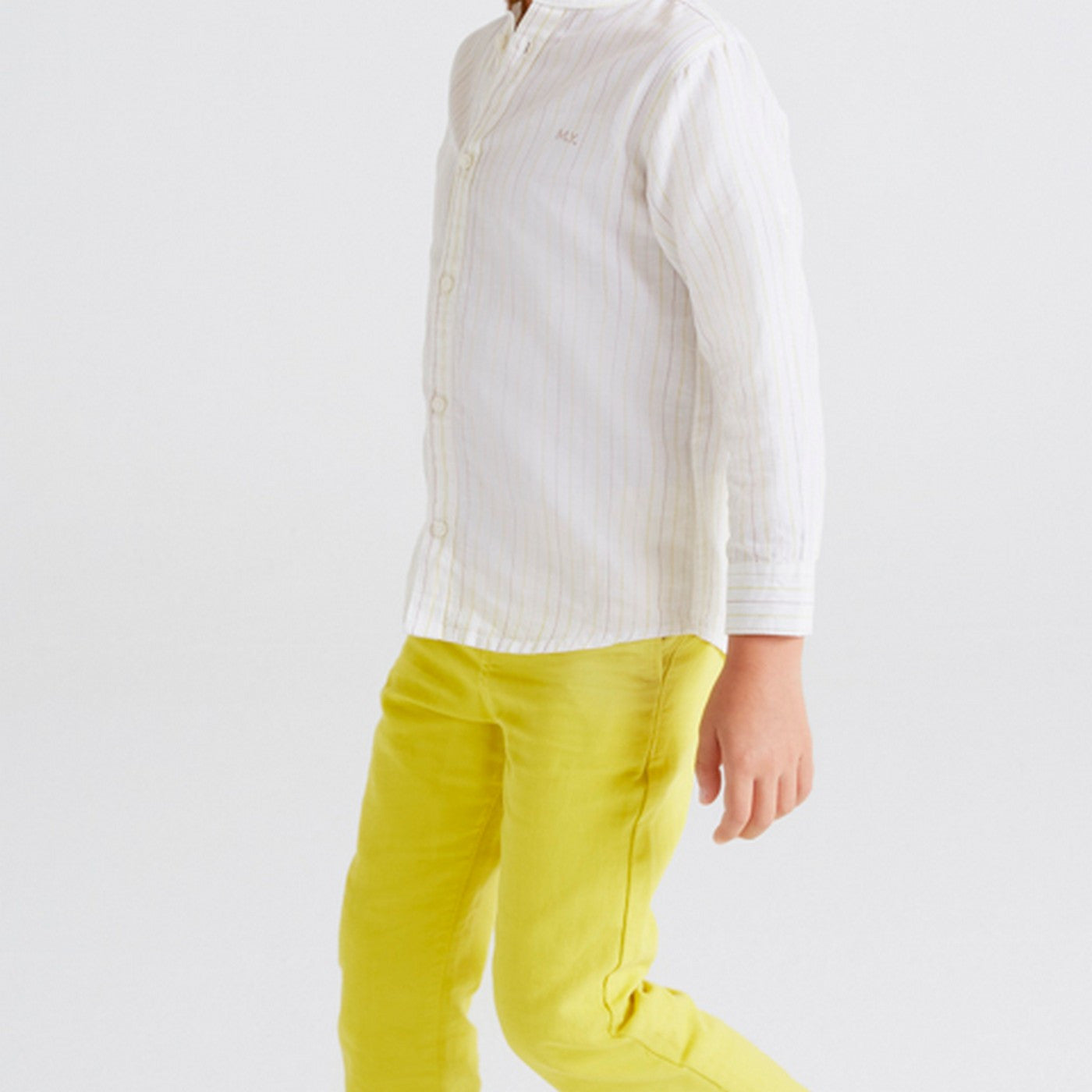 Long trousers in solid yellow color, in cotton blend.