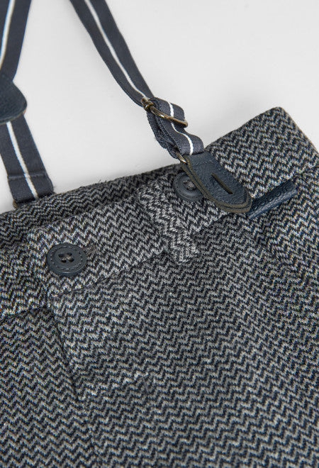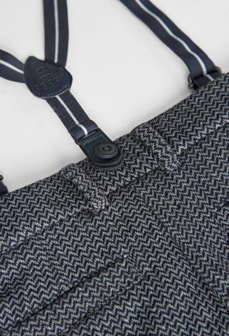 Lange Hose aus warmer Stretch-Baumwolle mit Mikromuster und Hosenträgern.