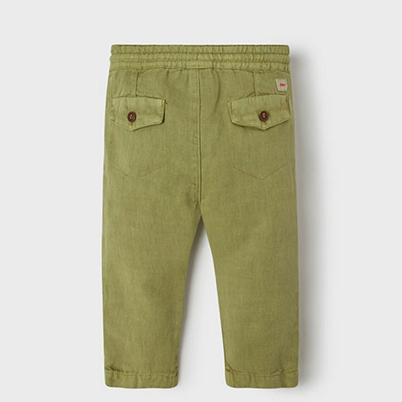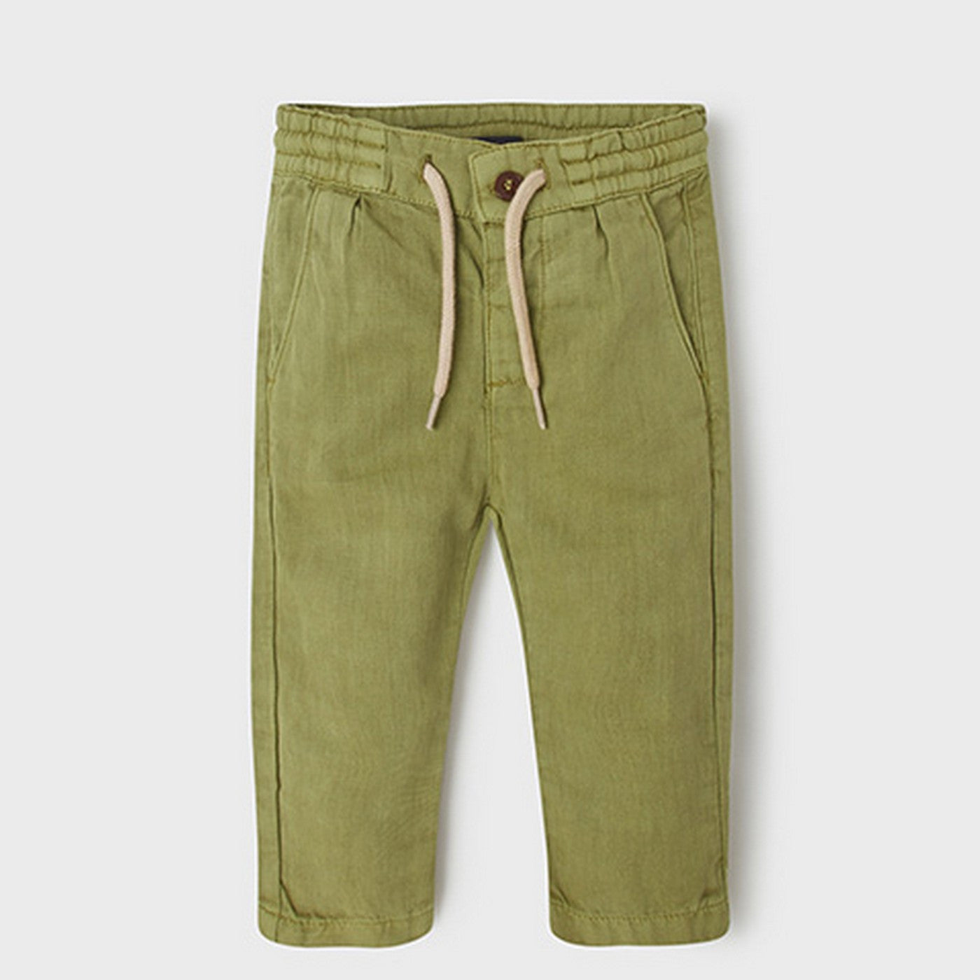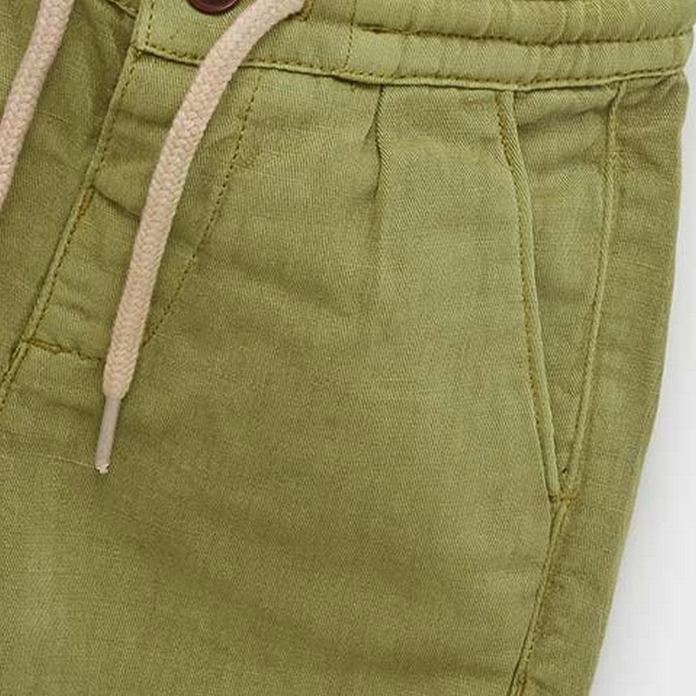 Long trousers in military green linen blend.