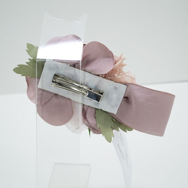 Tweezers with application of flowers and pink silk, which recalls the band of the dress art. 2009.