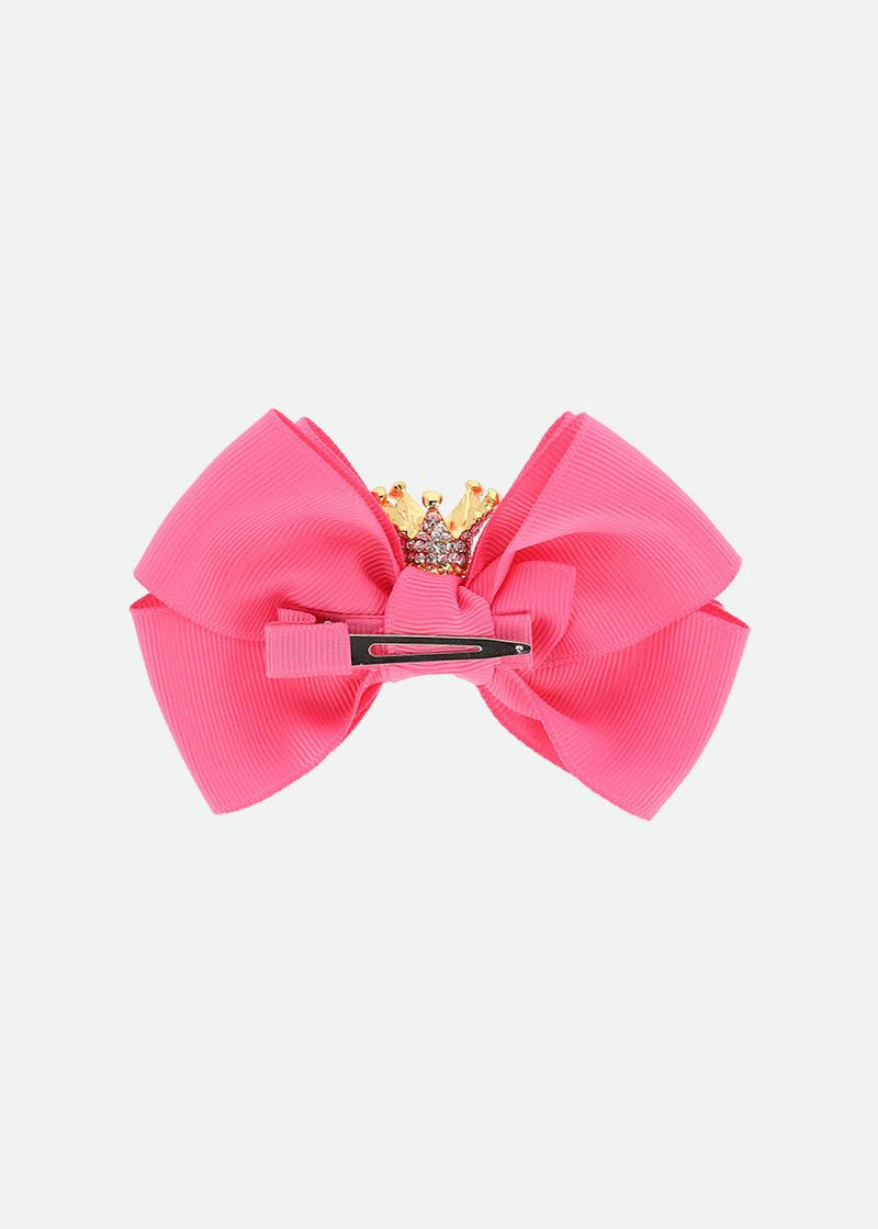Our fabulous sparkly crown bow hair clip comes in a wide range of colors, the perfect finishing touch to any outfit. The iconic bow features a sparkling crown of golden crystals, fit for a princess