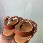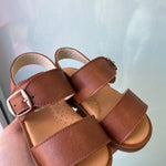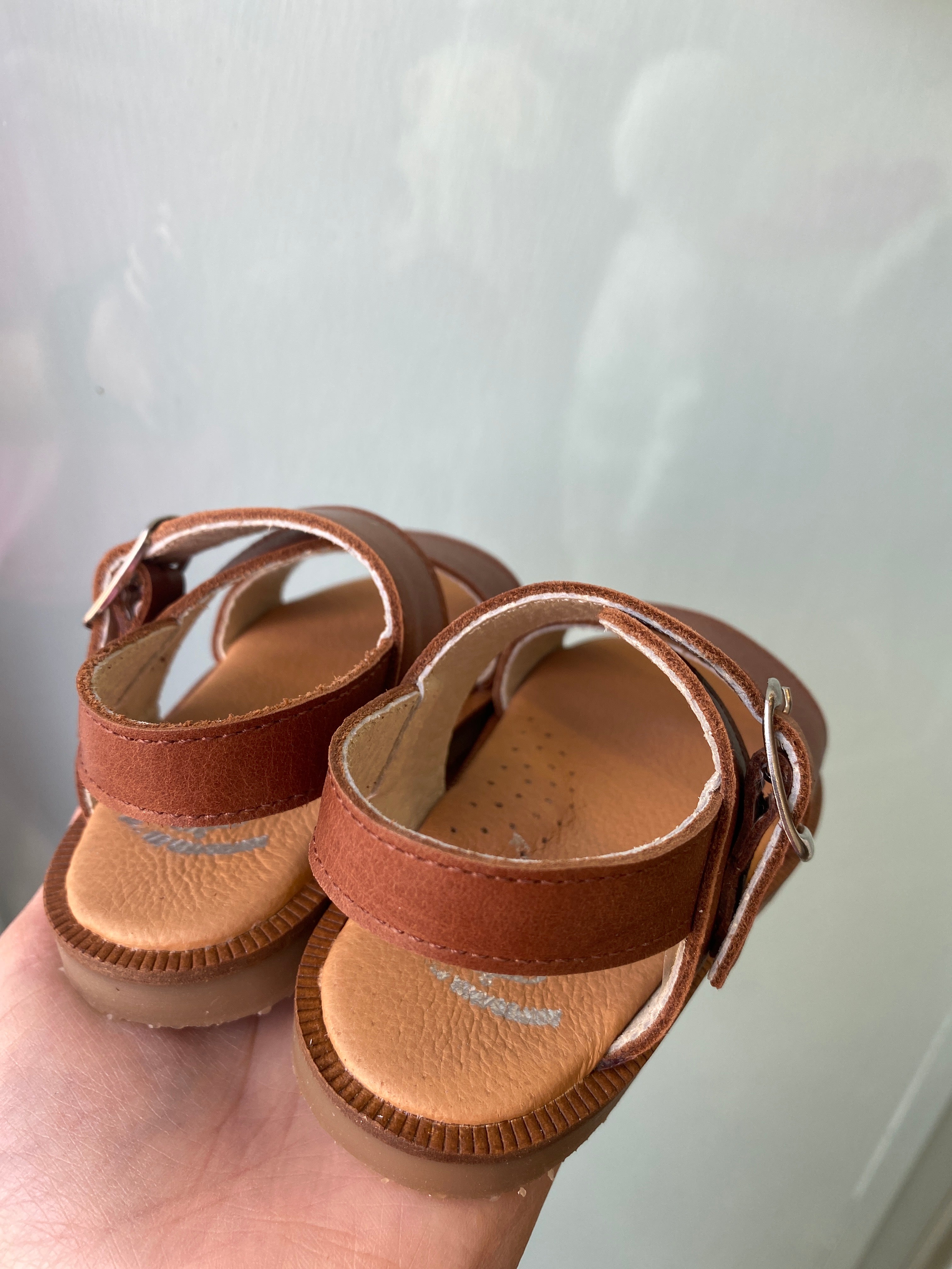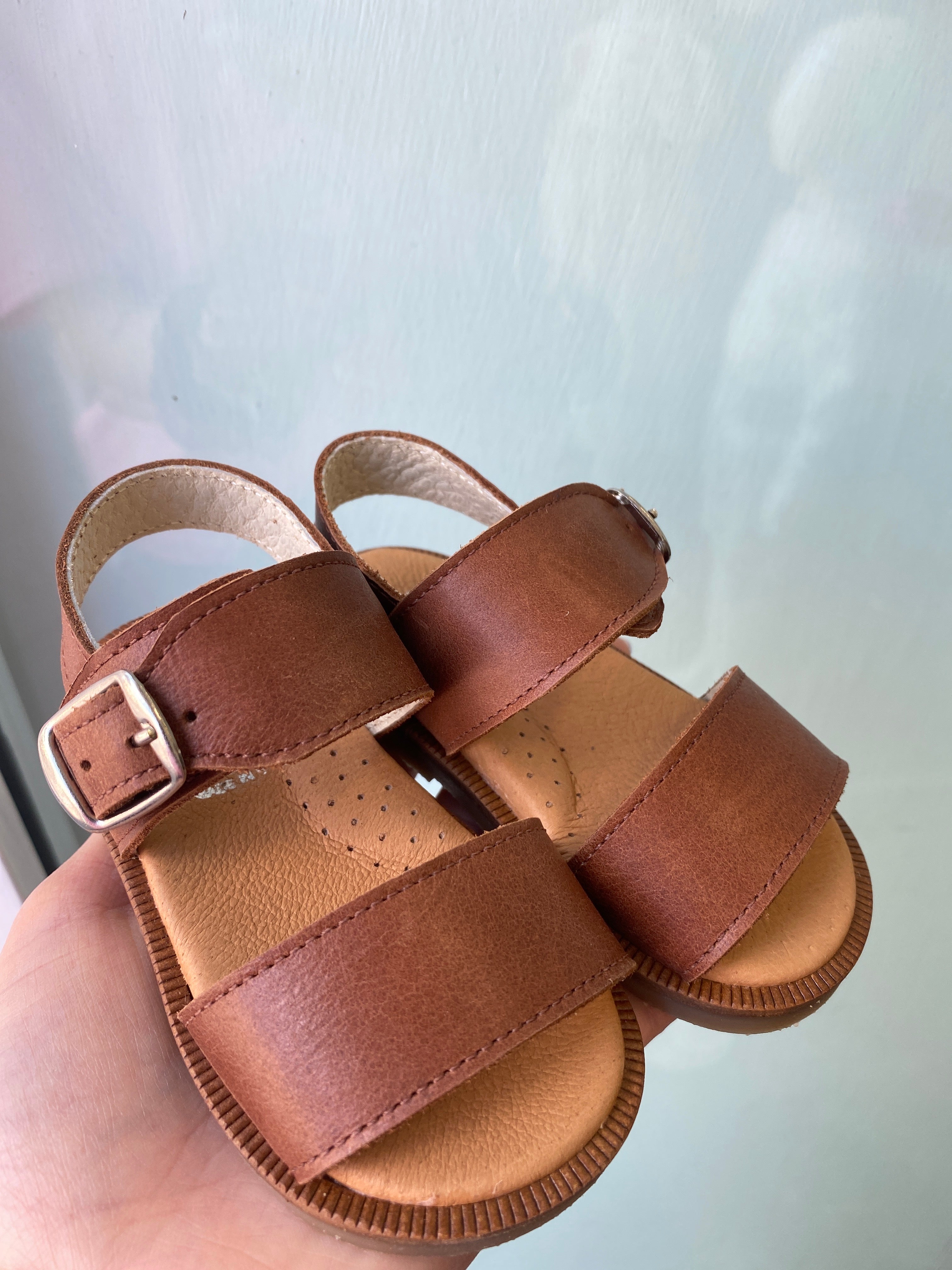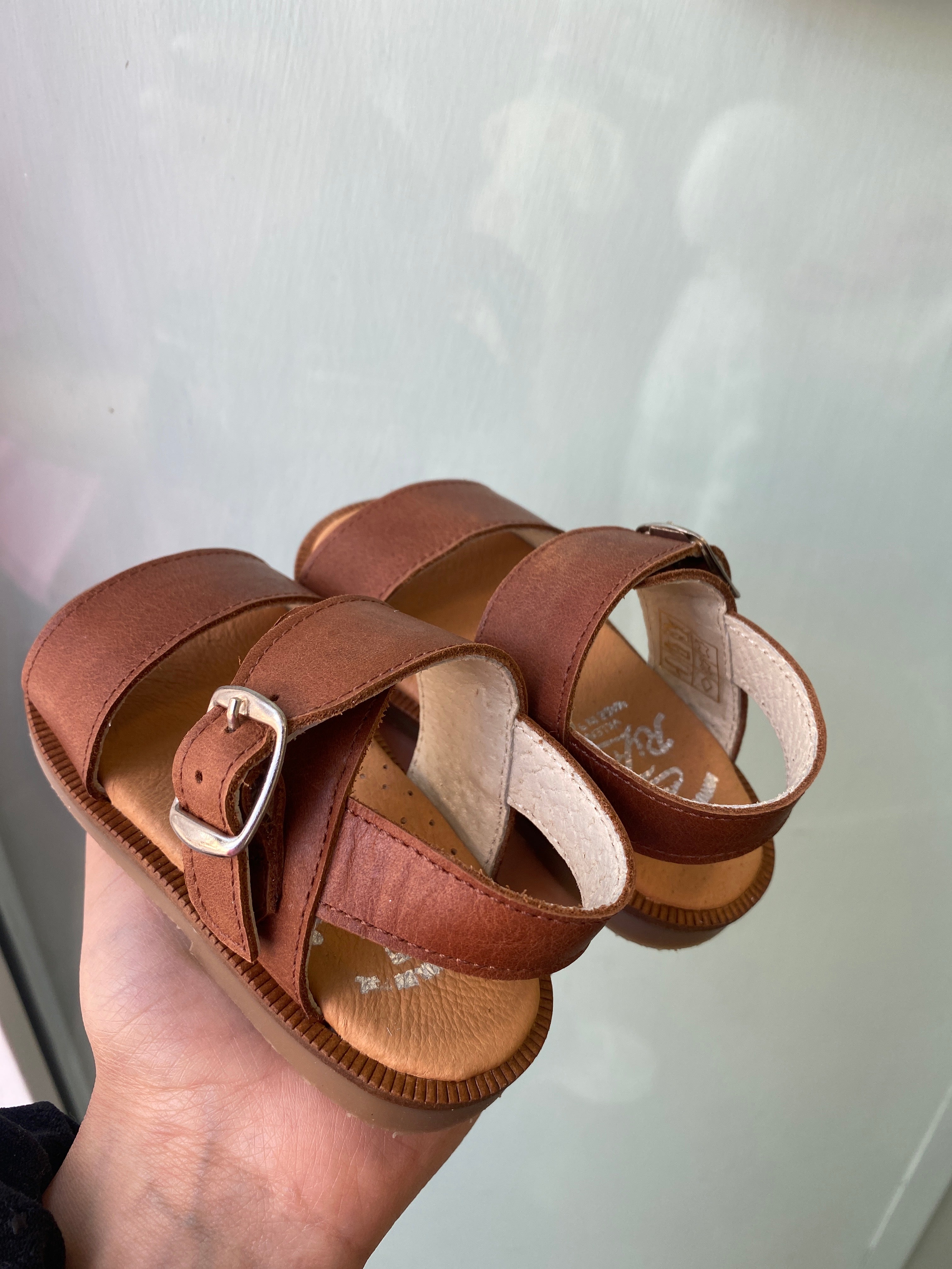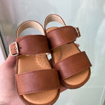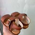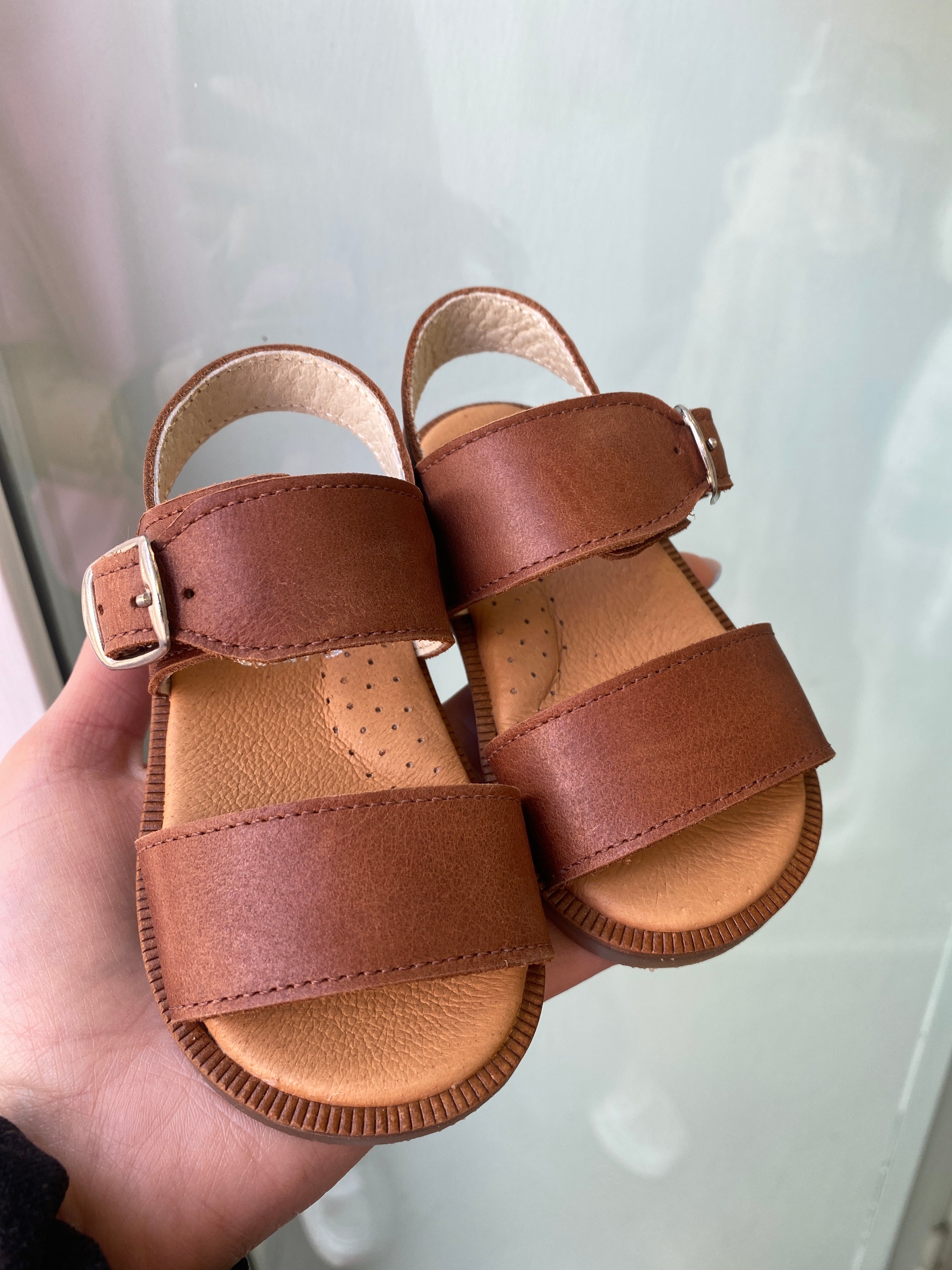 Sandali primi passi in pelle, con fibie regolabili e suola in gomma.