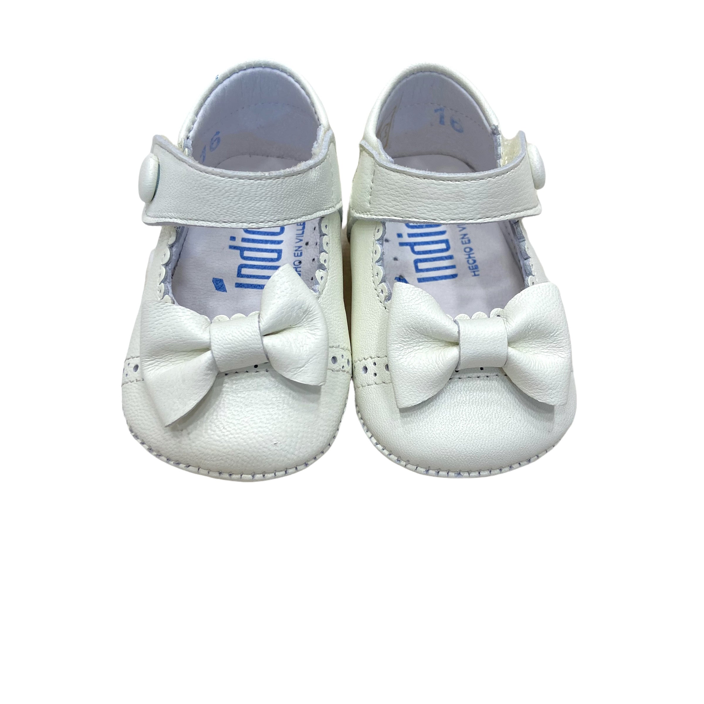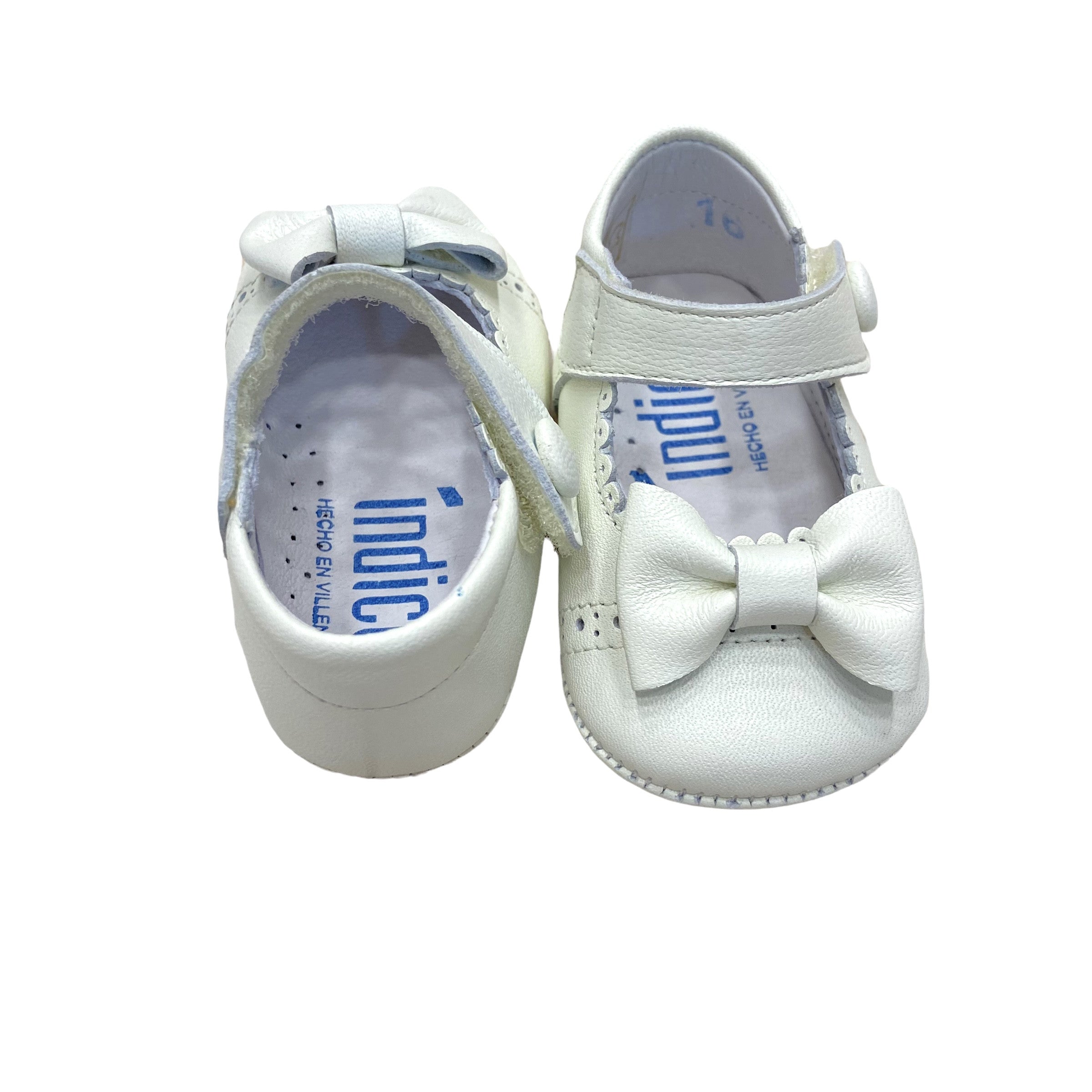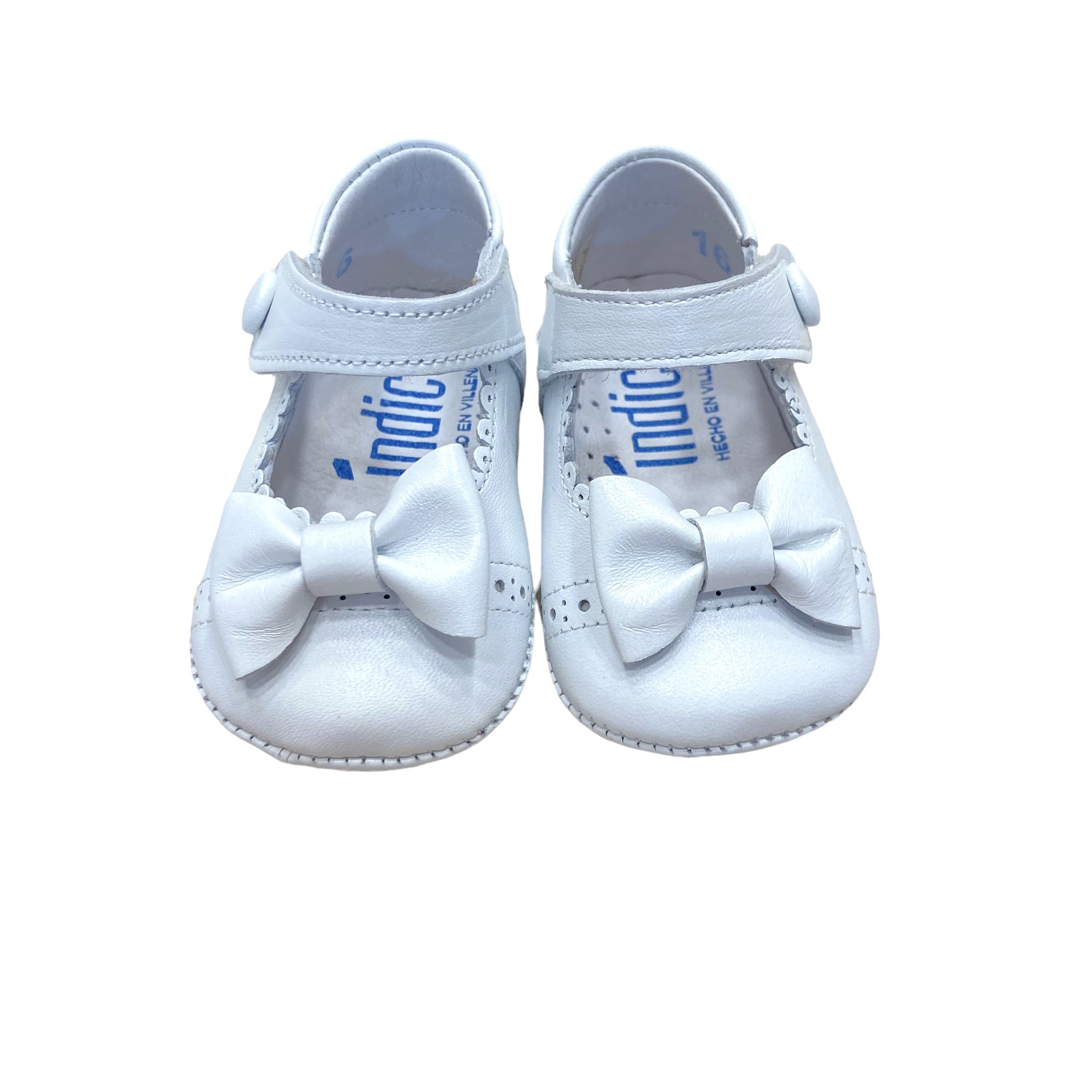 Cradle shoes for her with bow, stitching and velcro opening in matte leather.