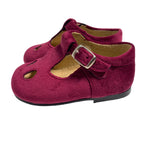 Velvet shoes, with eyelets and strap closure.