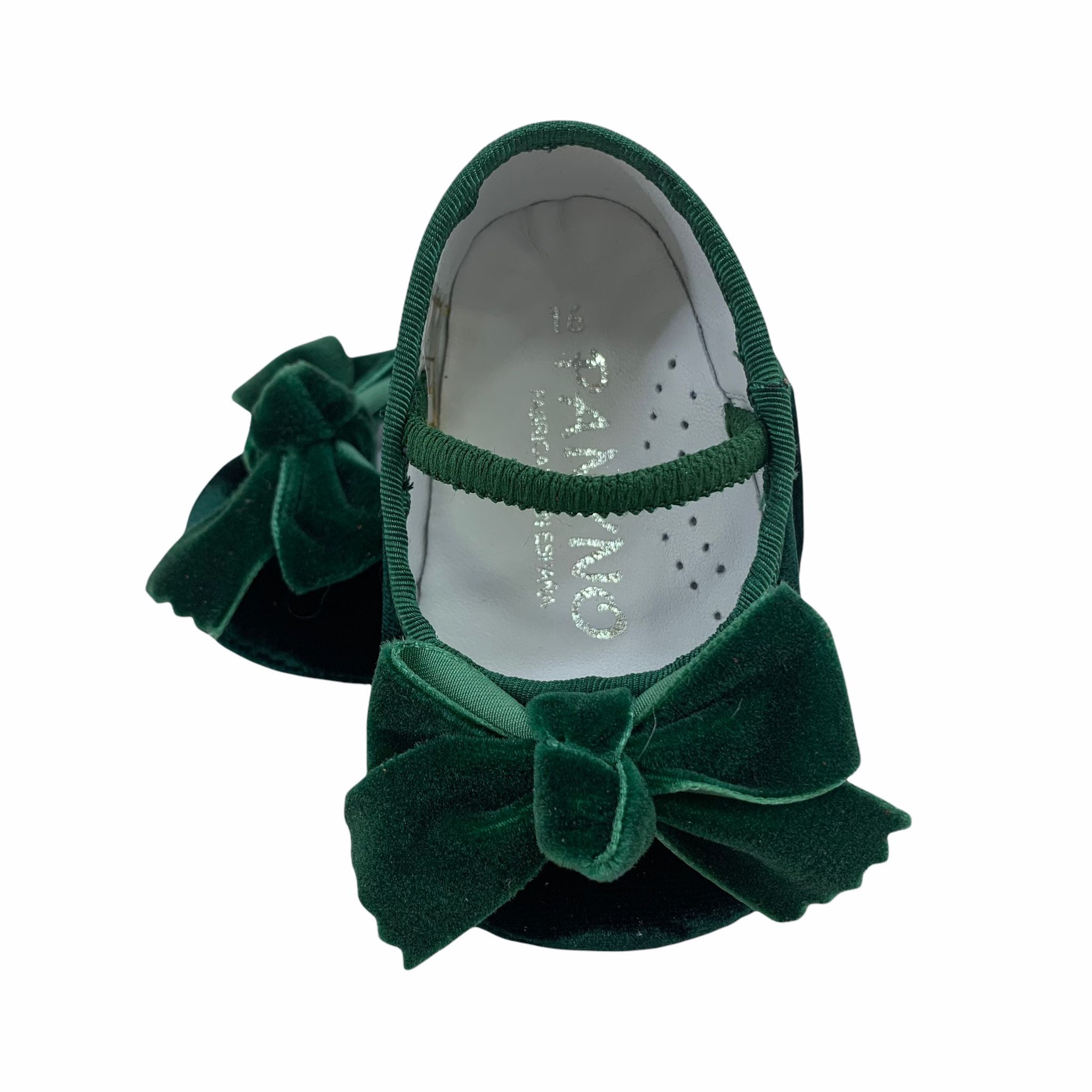 Velvet ballet flats in different colors, with elastic and bow on the tip.