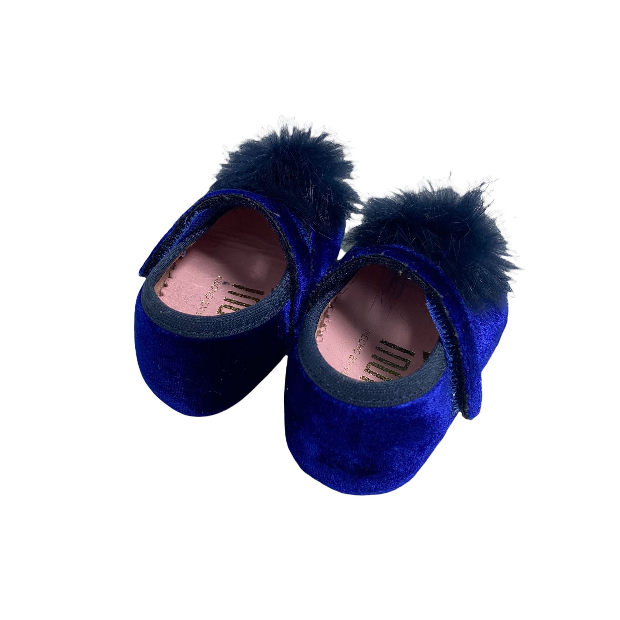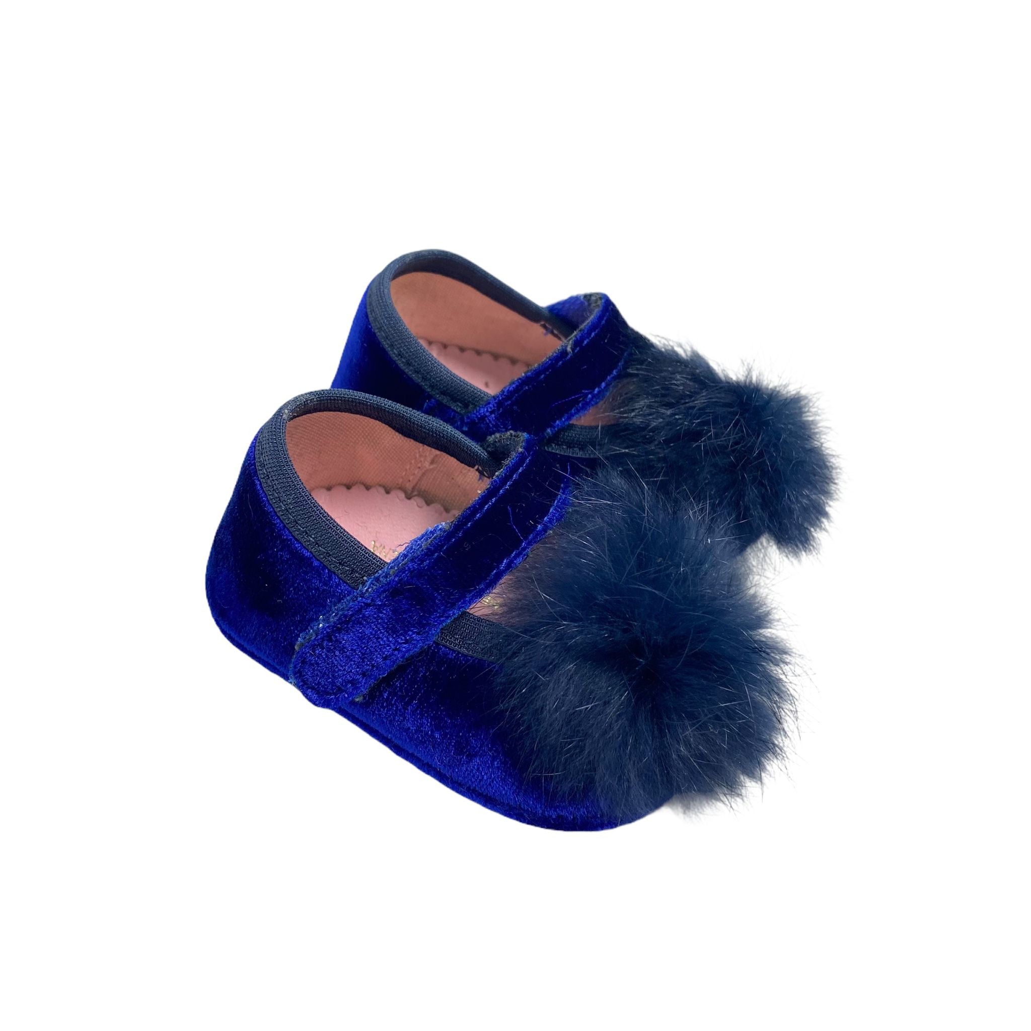 Ballerina Velvet Cradle Shoes With Pom Poms.