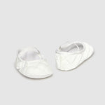 Scarpe per neonata dallo stile classico. Un ever green per uno stile elegante. Scarpa con fodera interna e soletta in cotone traspirabile. Fascia elasticizzata che garantisce una migliore aderenza e stabilità del piede. Fiocco decorativo. Modello appartenente alla nostra linea Barefoot, con suola piatta (zero drop) antiscivolo e forma rotonda, senza rinforzi o parti metalliche. È leggera, larga e rispettosa dei piedi dei bambini. Inoltre, la sua soletta è antibatterica e traspirante.