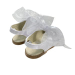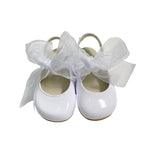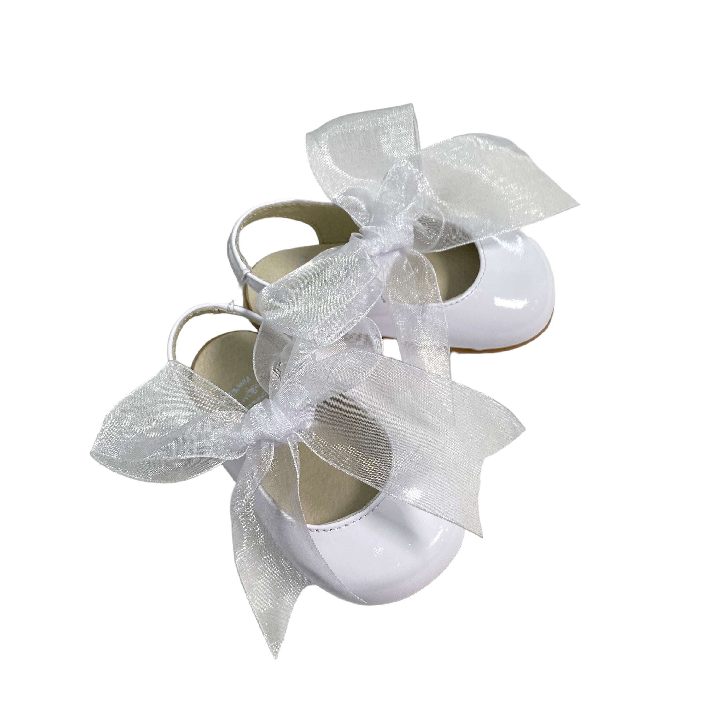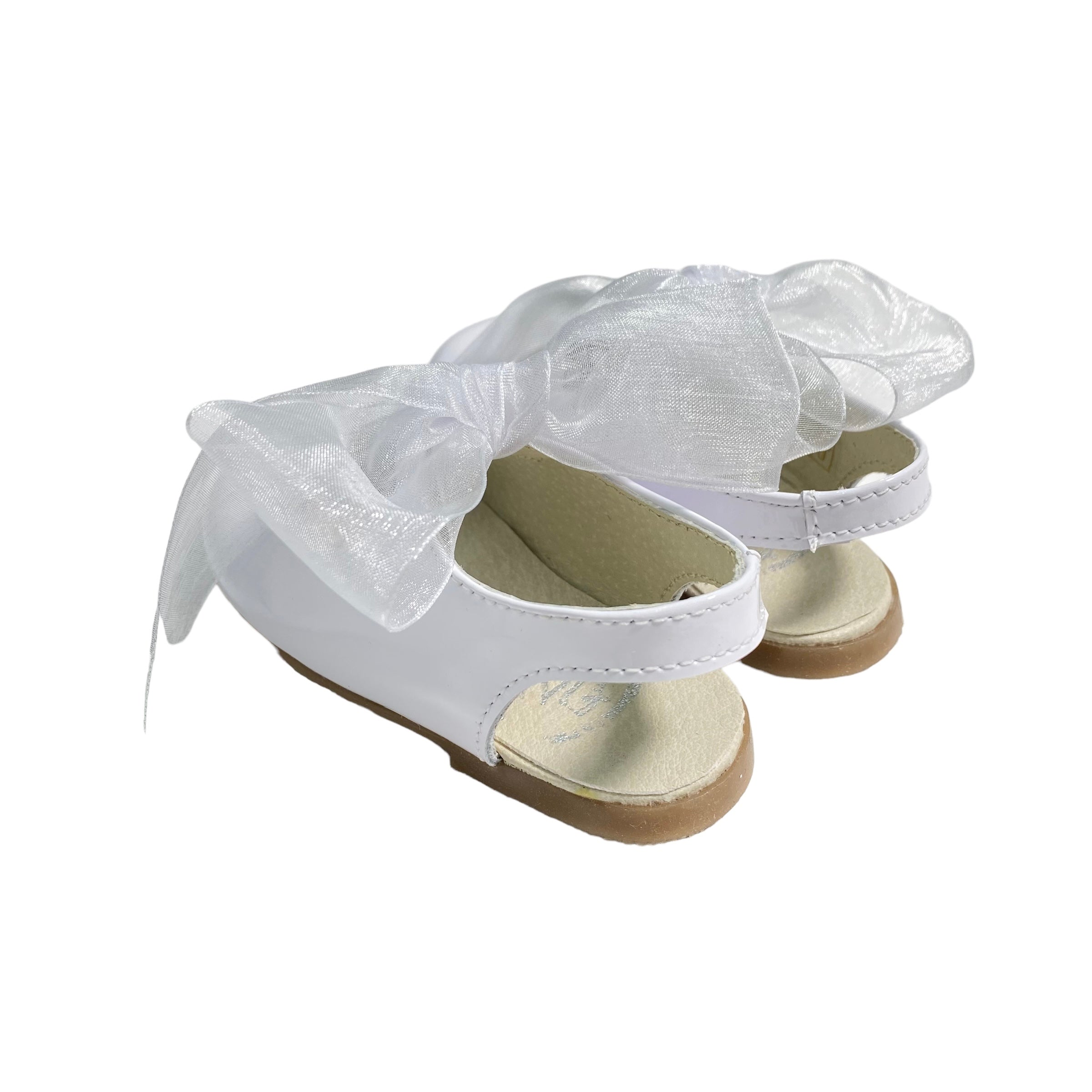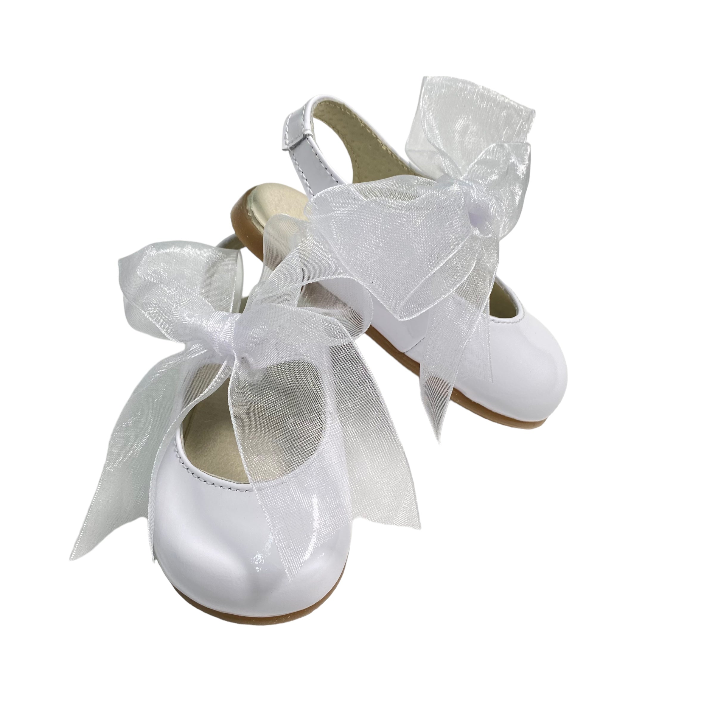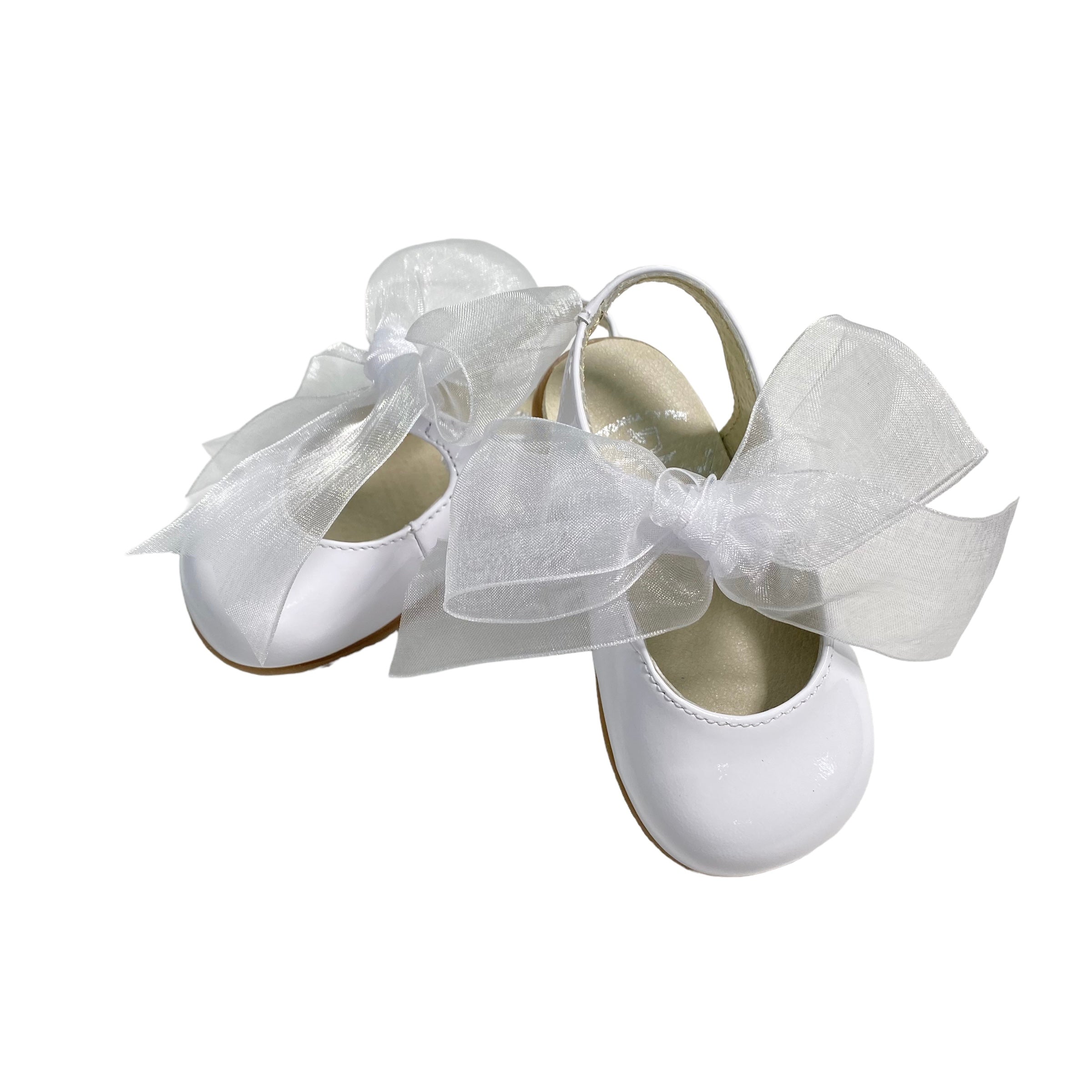Le nostre scarpe sono perfette per i primi passi della tua bambina. Con il loro design sabot e il fiocco in organza sopra, queste scarpe sono sia comode che eleganti. La vernice conferisce un tocco di classe e facilmente lavabile.