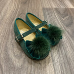 Ballerinas für die ersten Schritte aus Lackleder mit Filzschleife und Fellbommel vorne.