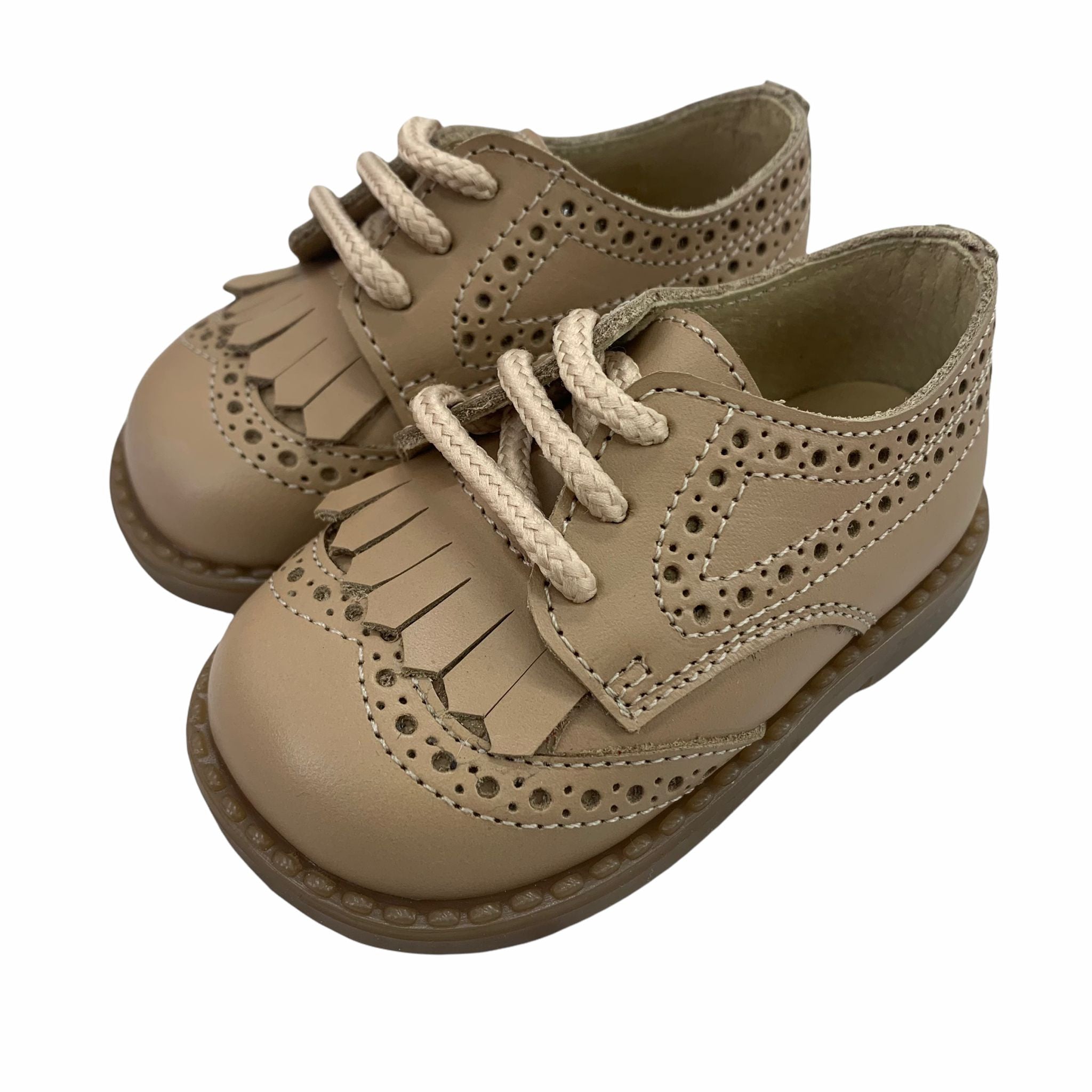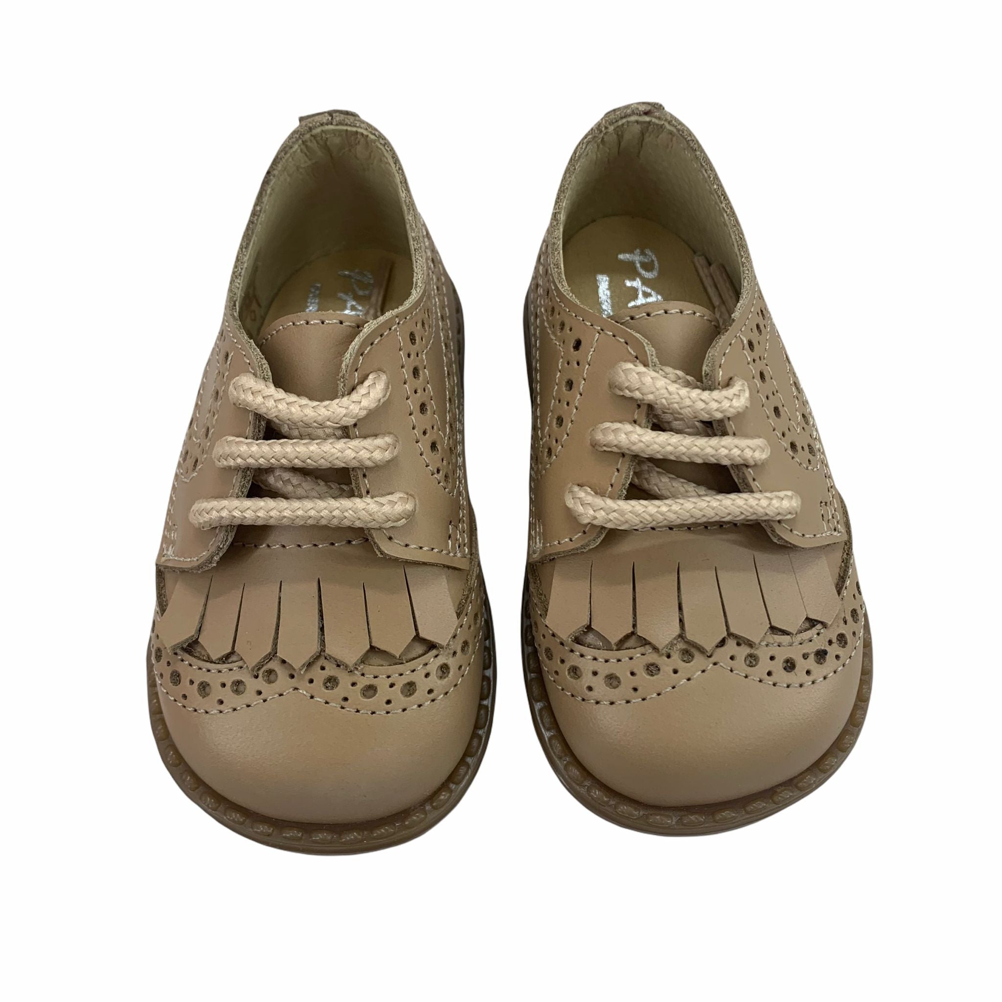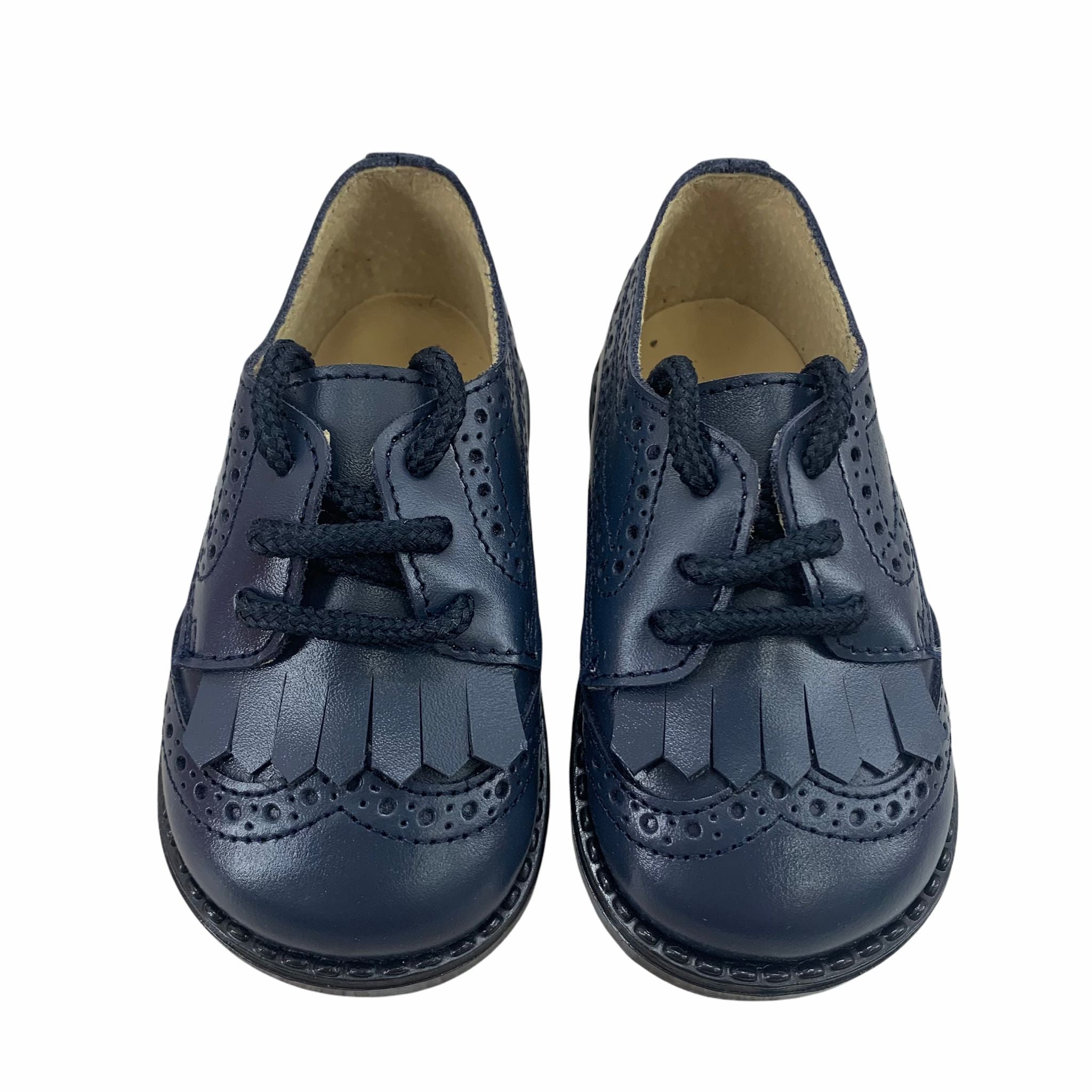 First steps shoe in French model leather with tassel and laces.