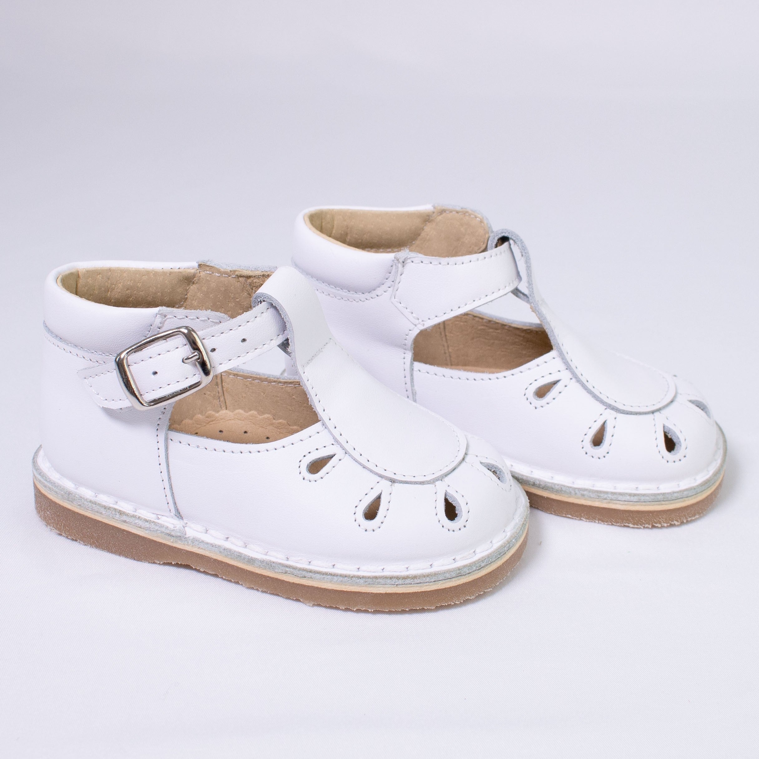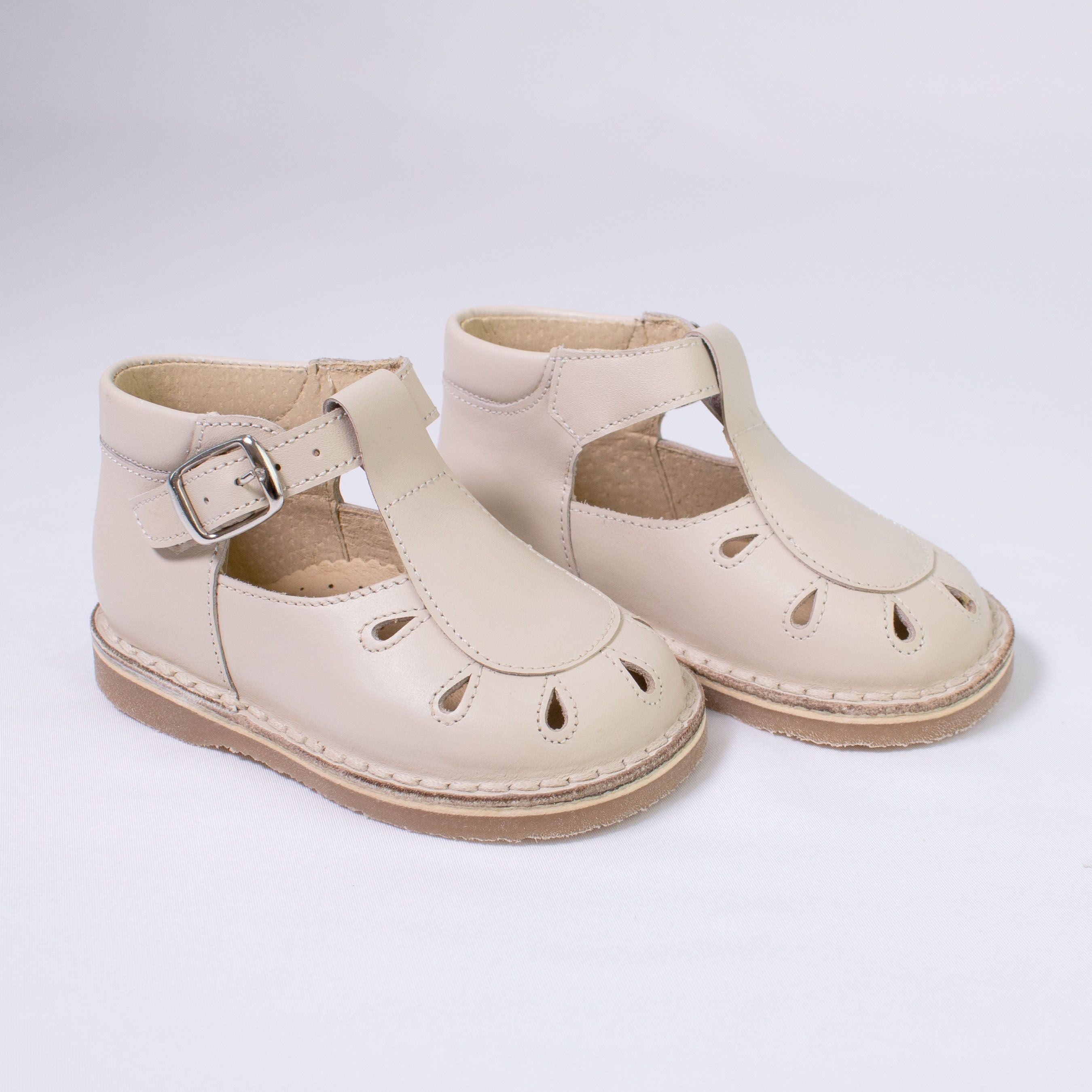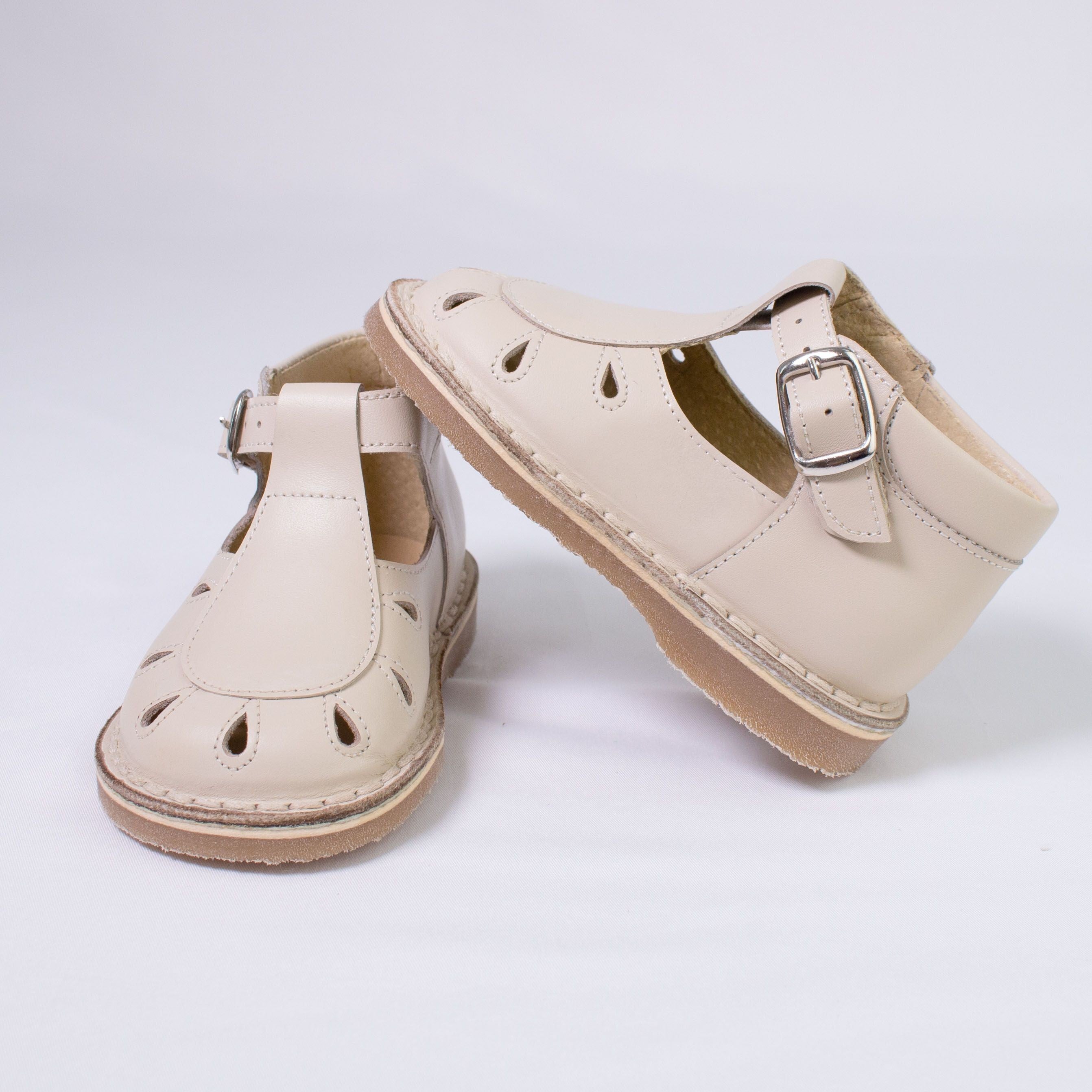 Shoes Sandal Model First Steps in Leather. Opening On The Side. With Openings and Perforations