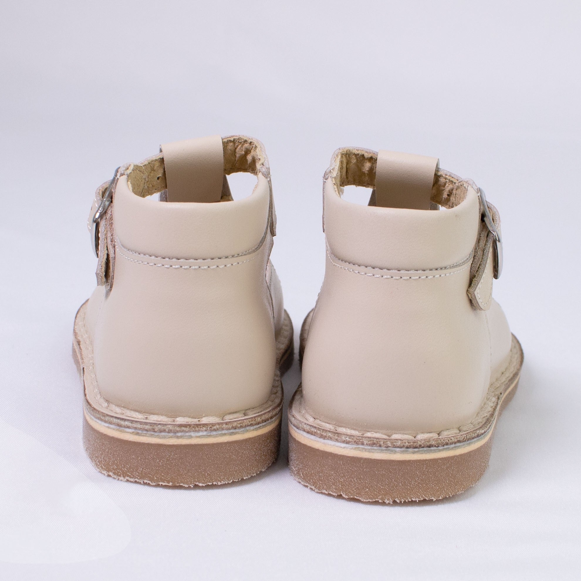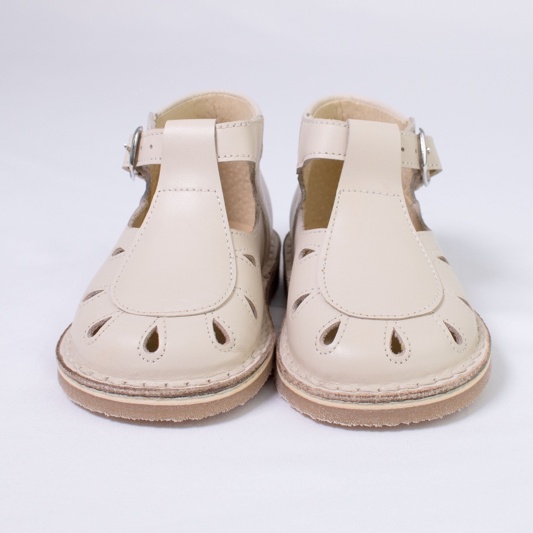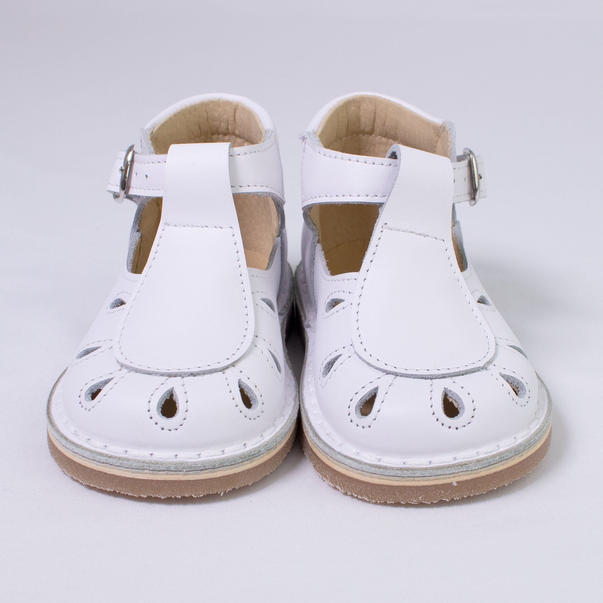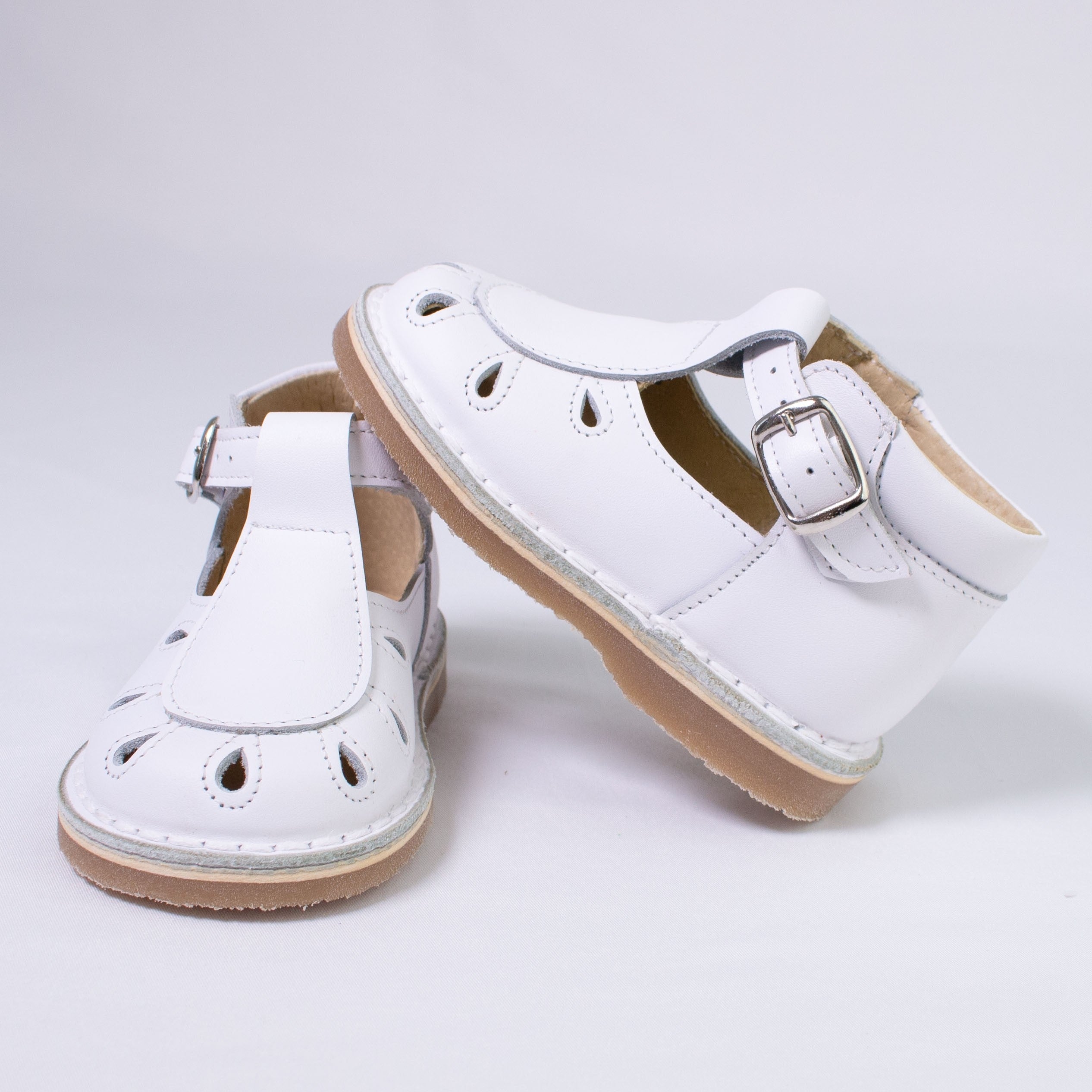 Shoes Sandal Model First Steps in Leather. Opening On The Side. With Openings and Perforations