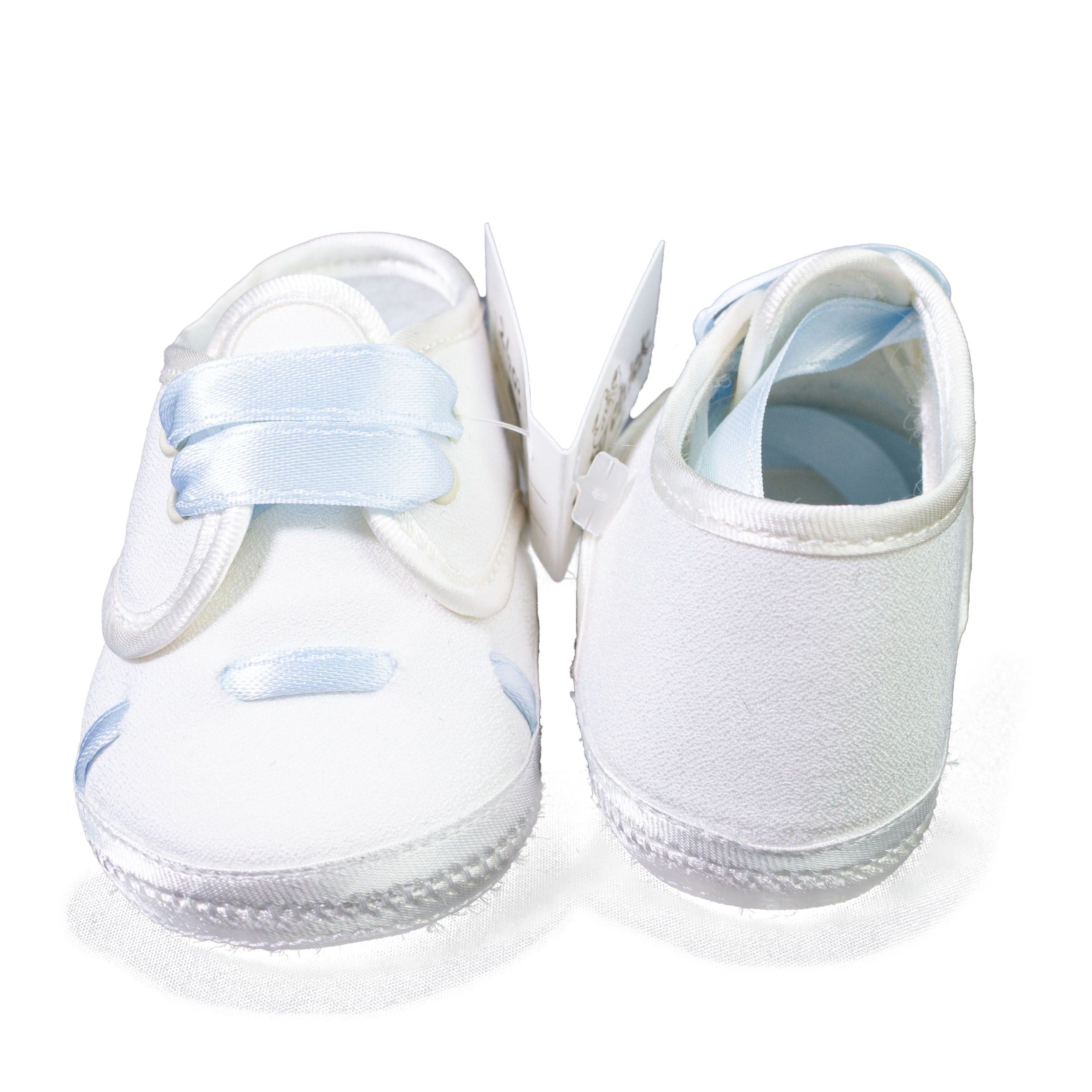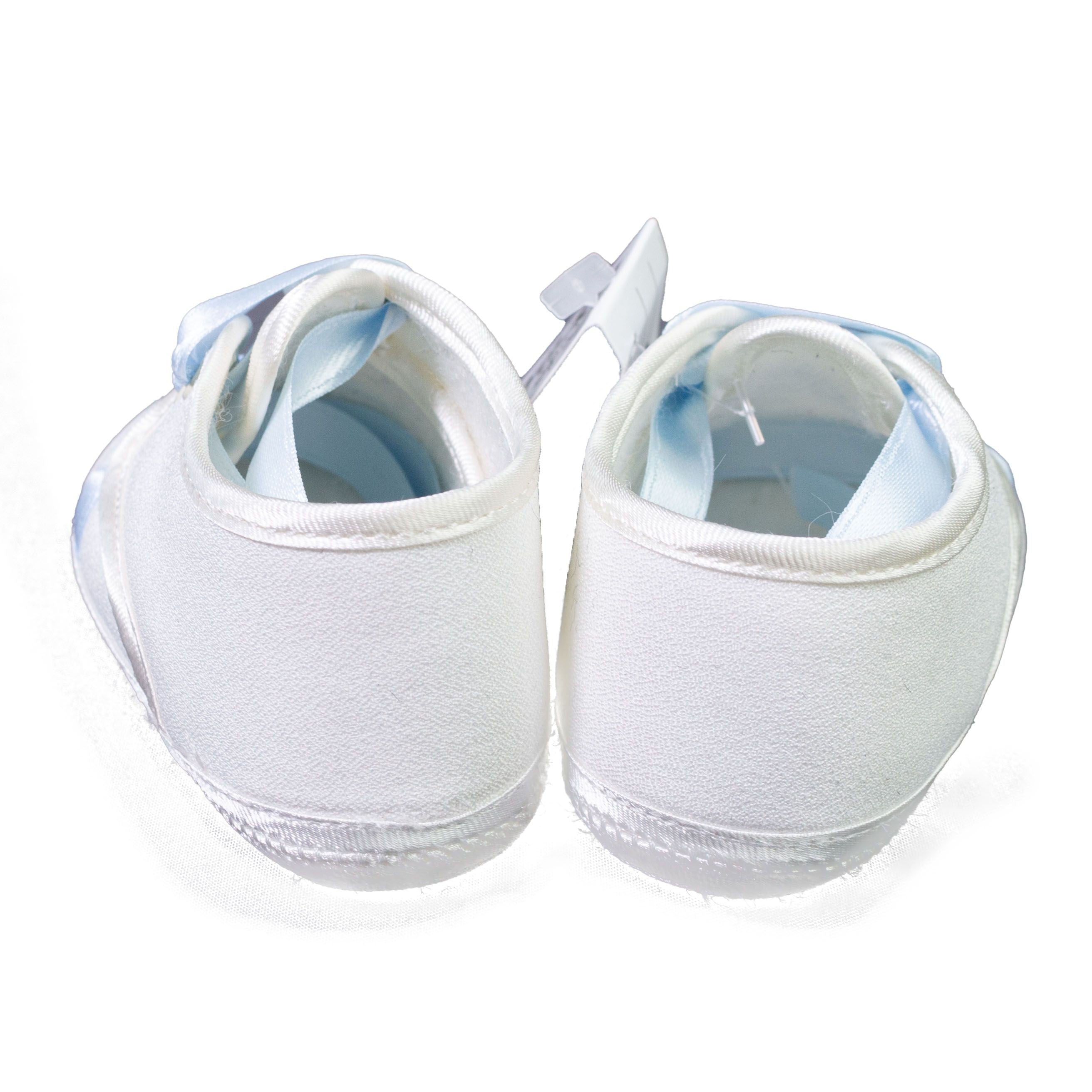 Crib Shoes Elegant White Baptism Ceremony With Light Blue Satin Lace Closure And On The Toe Enriched With Light Blue Satin Trimmings Newborn Baby Chic 2403