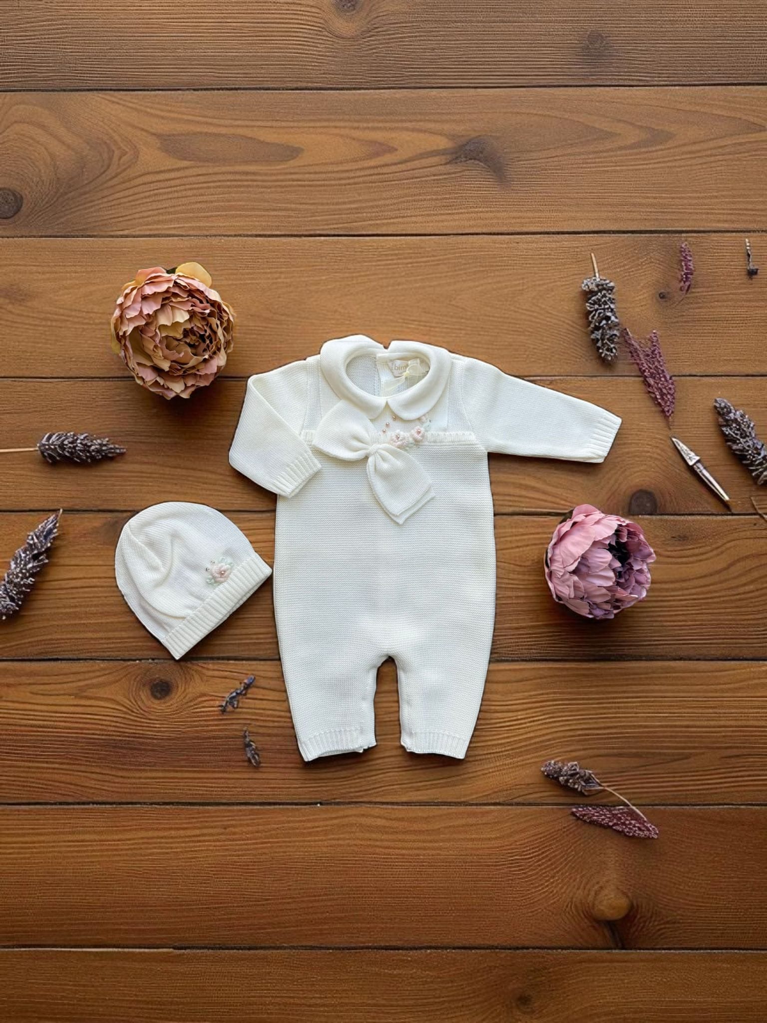 Set In Lana Con Fiocco Neonata Panna BIMBALO'