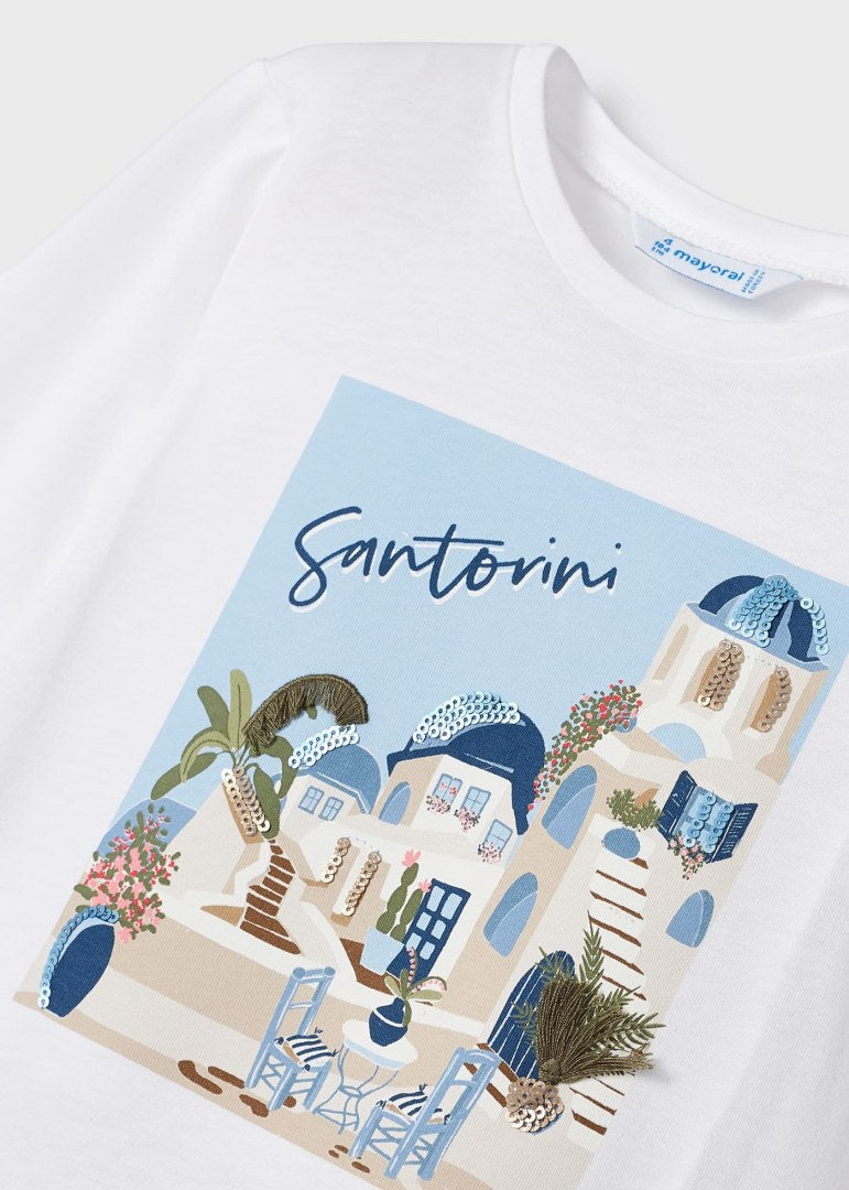 Langarm-T-Shirt für Mädchen. Rundhalsausschnitt. Stoff aus 100 % Baumwolle. Dekorative Elemente: Pailletten. Gedrucktes Design. Aus Sicherheitsgründen kann es bei kleinen Größen (2-3 Jahre) zu Abweichungen bei den verwendeten Dekorationselementen kommen.