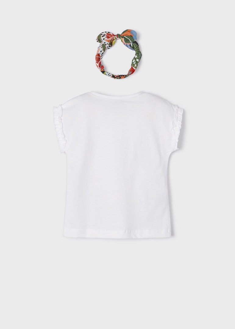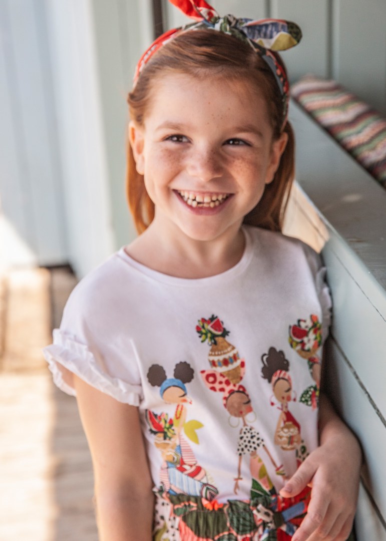 ECOFRIENDS-Kleidungsstück aus 100 % nachhaltiger Baumwolle. Kurzärmliges T-Shirt für Mädchen. Gedrucktes Design.