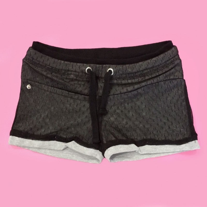 Short in warm gray basic cotton covered with black dotted micro mesh
