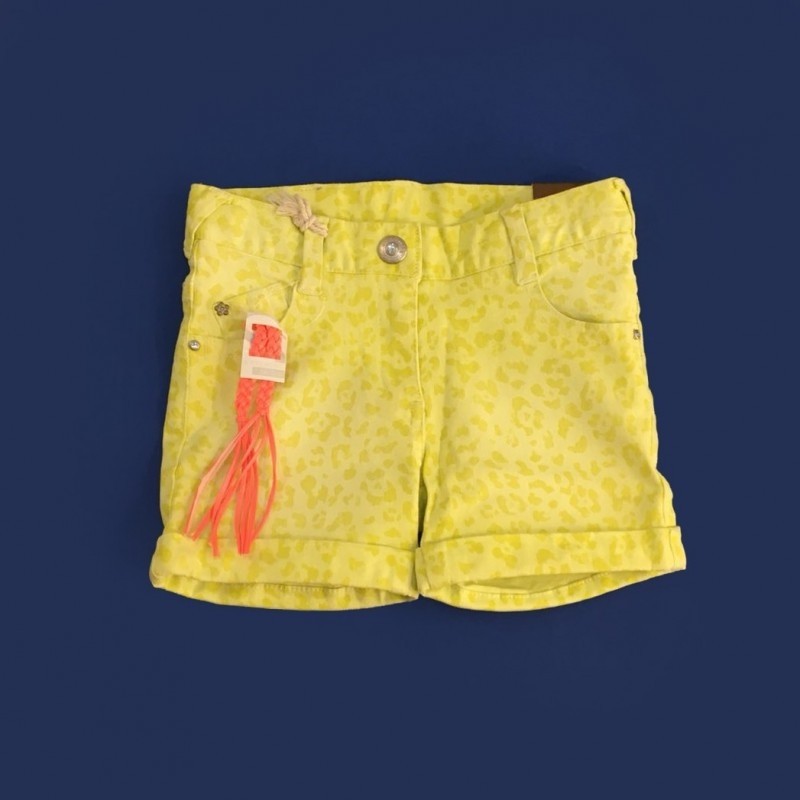 -Short in yellow cotton with speckles print