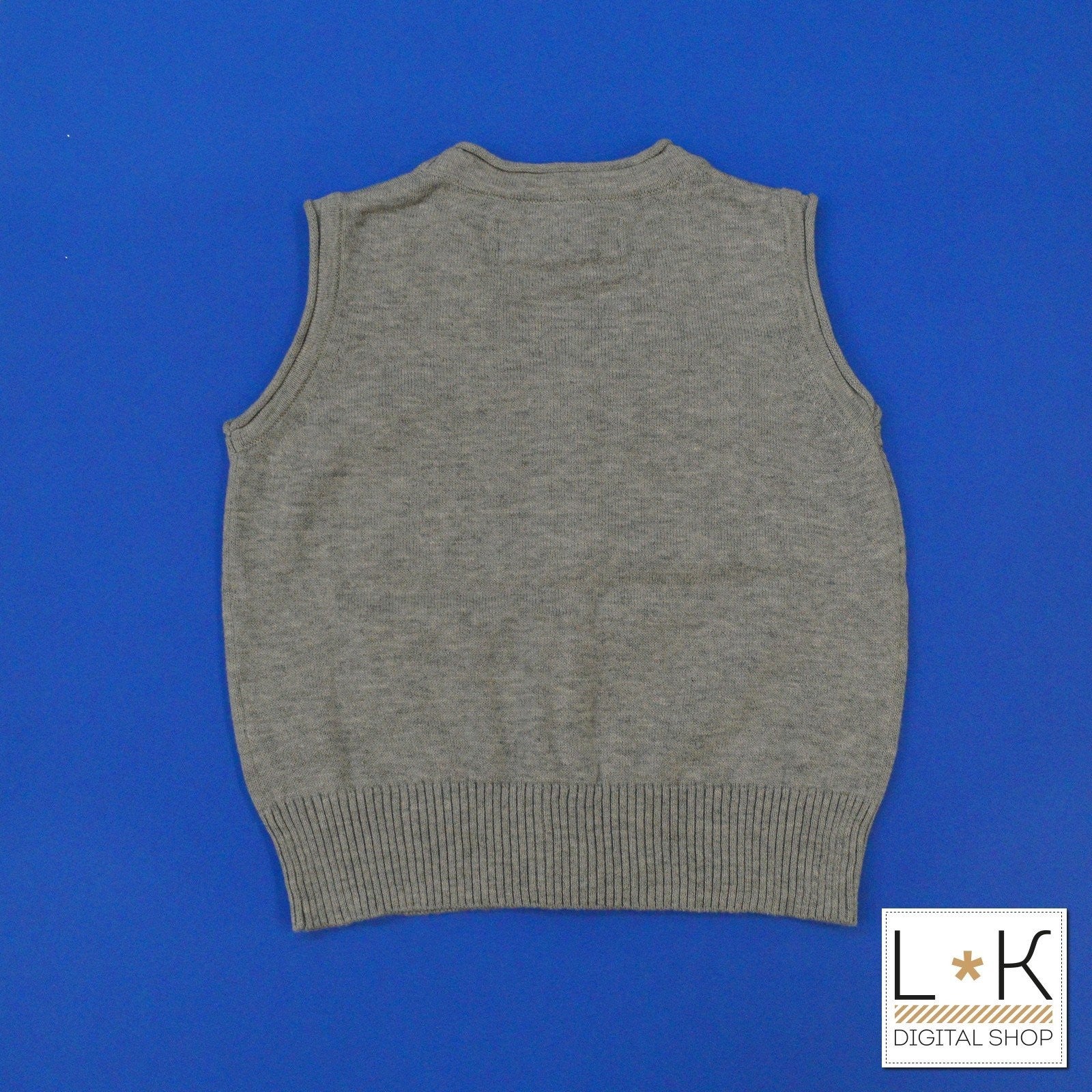 Sleeveless Gray Cotton Thread with White Logo Embroidery on the Chest and Button Closure.