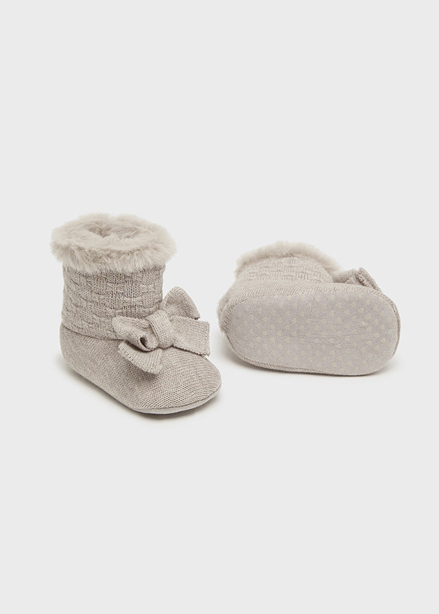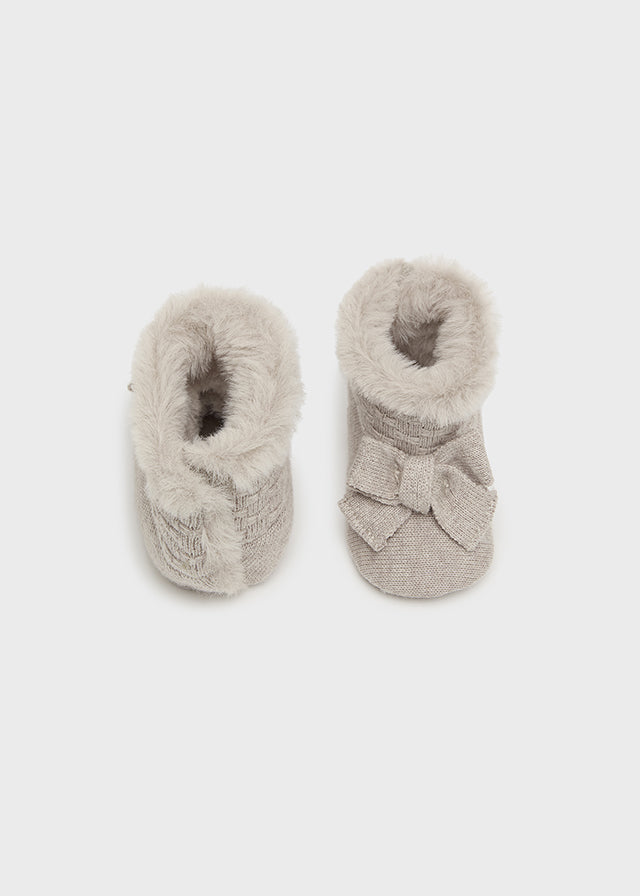 Questi stivaletti da culla in morbida maglia e ecopelliccia sono l'ideale per coccolare la tua neonata. Confortevoli e caldi, sono perfetti per le giornate più fredde e proteggono i piedi delicati del tuo bambino. Questi stivali sono un must-have per ogni mamma premurosa.