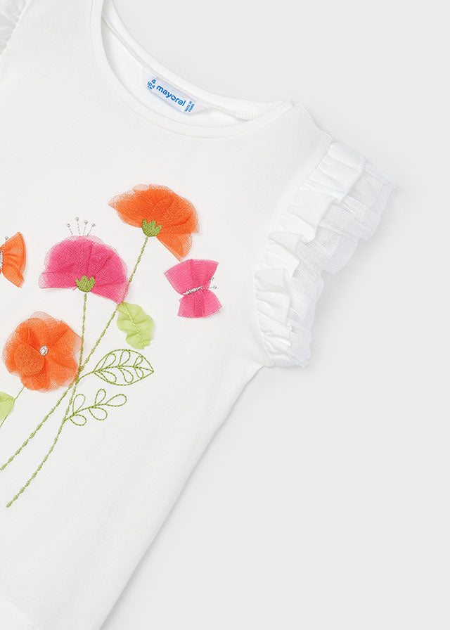 T-Shirt In Cotone Con Fiori In Tulle Bambina MAYORAL 3079