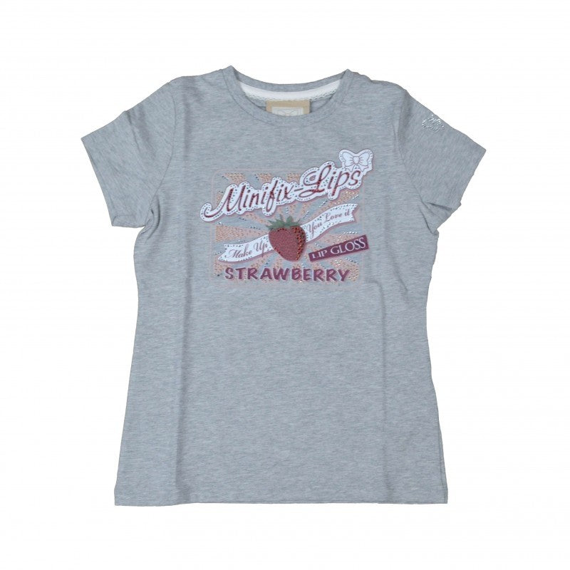 Gray cotton T-shirt with print and rhinestone applications on the chest