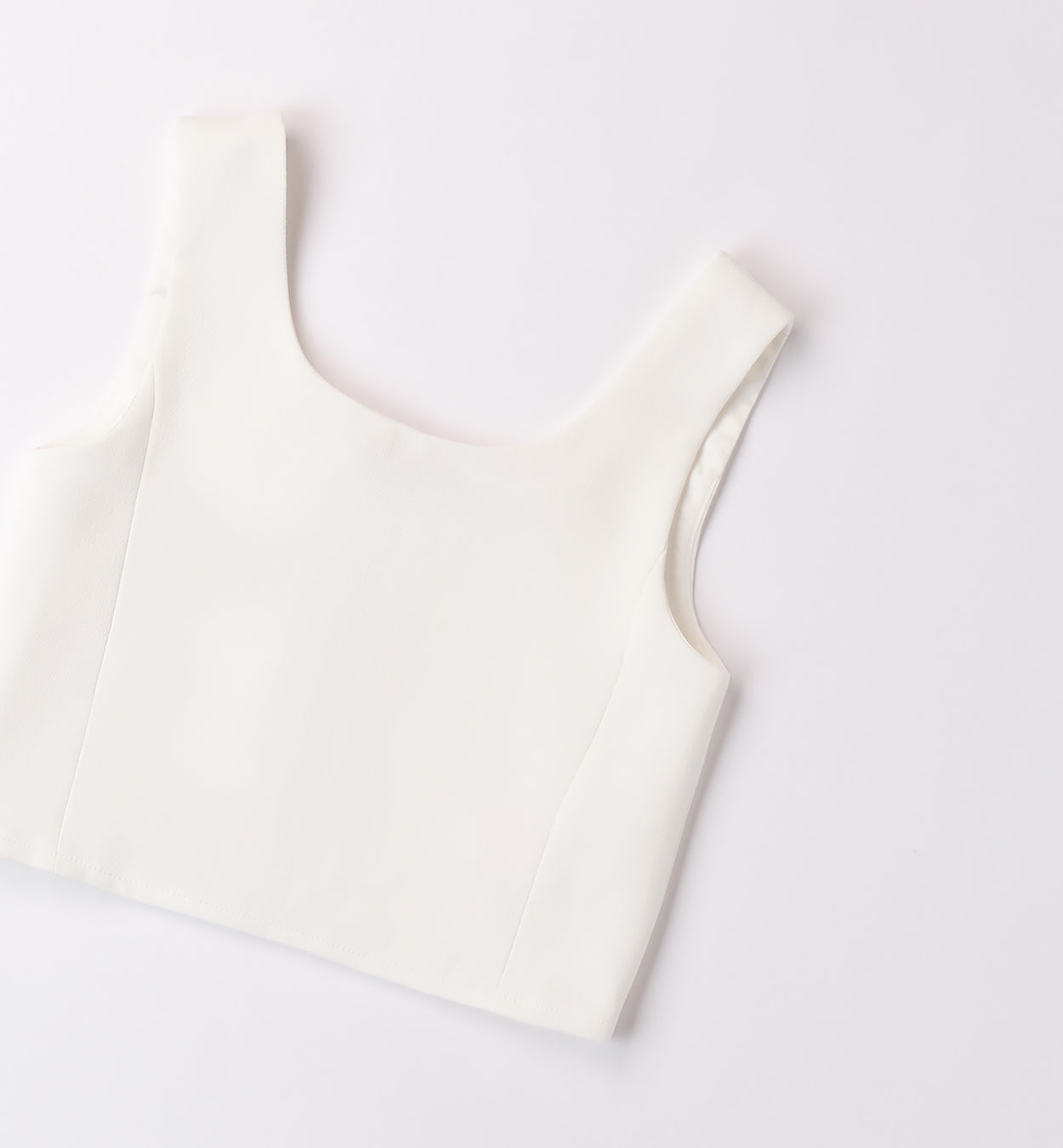 Questo top per ragazze di Sarabanda è realizzato in morbido tessuto crepe. La sua apertura sul retro con zip lo rende facile da indossare, mentre il suo design elegante e di fantasia tinta unita lo rende perfetto per ogni occasione. Aggiungi un tocco di stile al guardaroba della tua bambina con questo top top crop!